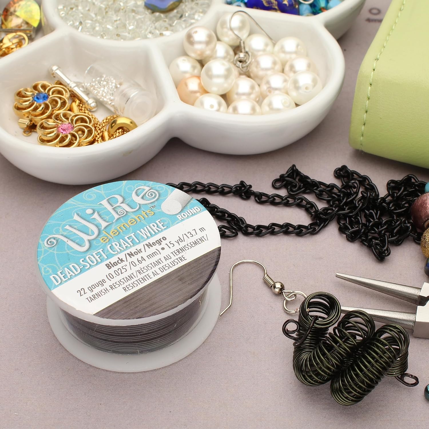 - COILS OF WIRE: This 22-gauge wire comes in a vibrant Black color, encased in a tarnish resistant coating, and measures 0.64mm (0.025 inches) in diameter. There is 15 yards of wire on this spool and comes with a clip to protect your wire when it is not in use.