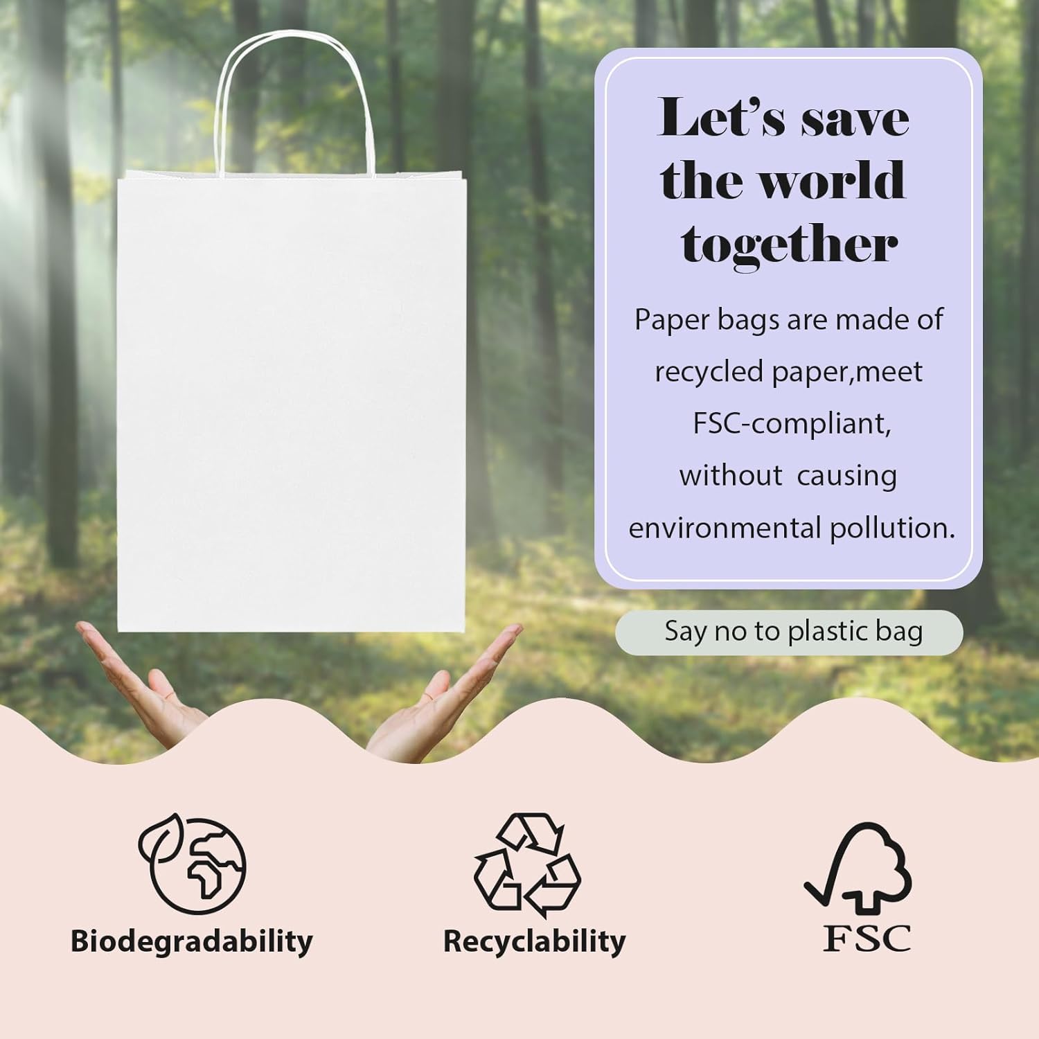 - RECYCLABLE - Halulu kraft paper white bags are made of premium recyclable kraft paper. They are durable, and reusable. Great for giving gifts or retail use. Great for packing groceries, merchandise, or takeout meals. These kraft paper bags are not waterproof and do not have pe film coating. Our kraft paper bags are recyclable, compostable, and a great alternative to plastic bags.