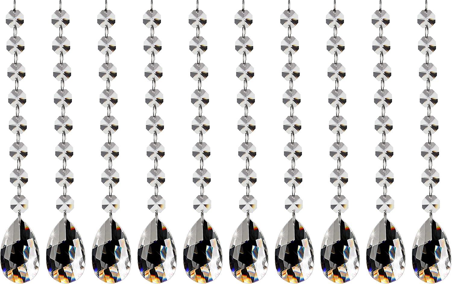 Fushing Teardrop Crystal Strands, 1ft Hanging Crystal Beads Chain Garland, Chandelier Pendants Parts Glass Beads