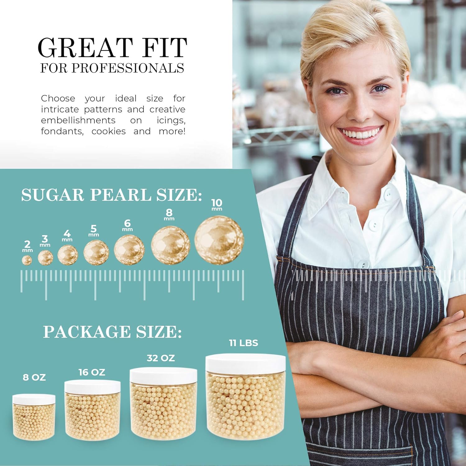 - π GREAT FOR MOST DESSERTS β Our ivory sugar pearls are classy for wedding and birthday cakes. But you can also use them to embellish cookies, cupcakes, ice cream, fondant and pastries for added pizzazz.