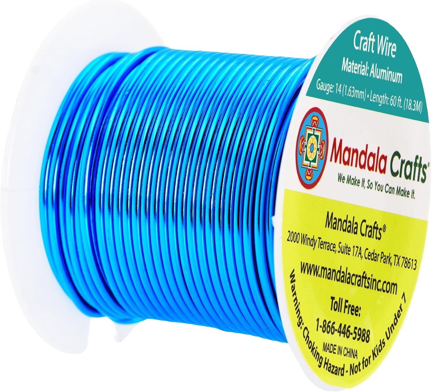 Mandala Crafts 14 Gauge Anodized Aluminum Craft Wire for Jewelry Making - 60 FT Colored Flexible Bondi Blue Wire - Bendable for Bonsai Armature Crafting Sculpting