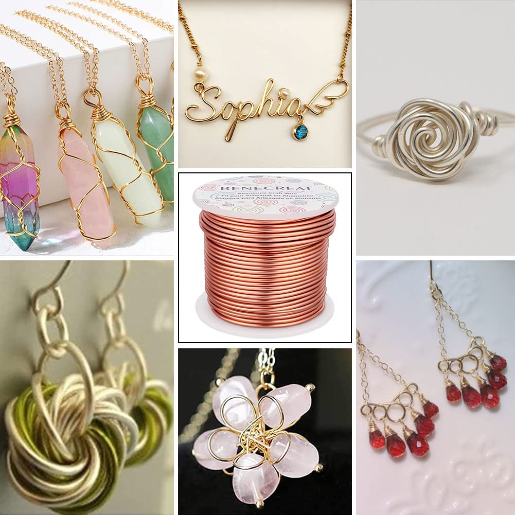 BENECREAT 12 Gauge 100FT Aluminum Wire Anodized Jewelry Craft Making Wire Beading Floral Aluminum Craft Material for Jewelry Craft Sculpture, Plant Gardening, Skeleton Making, Copper Tone