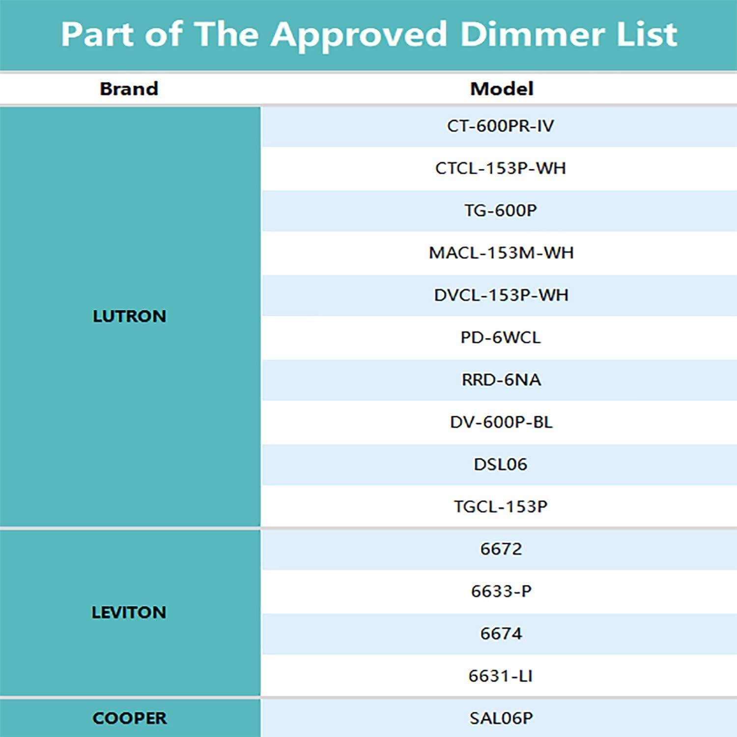 - ā GREAT DIMMING: Compatible with most of the TRIAC/ELV dimmers, smoothly dimming down to 10%.