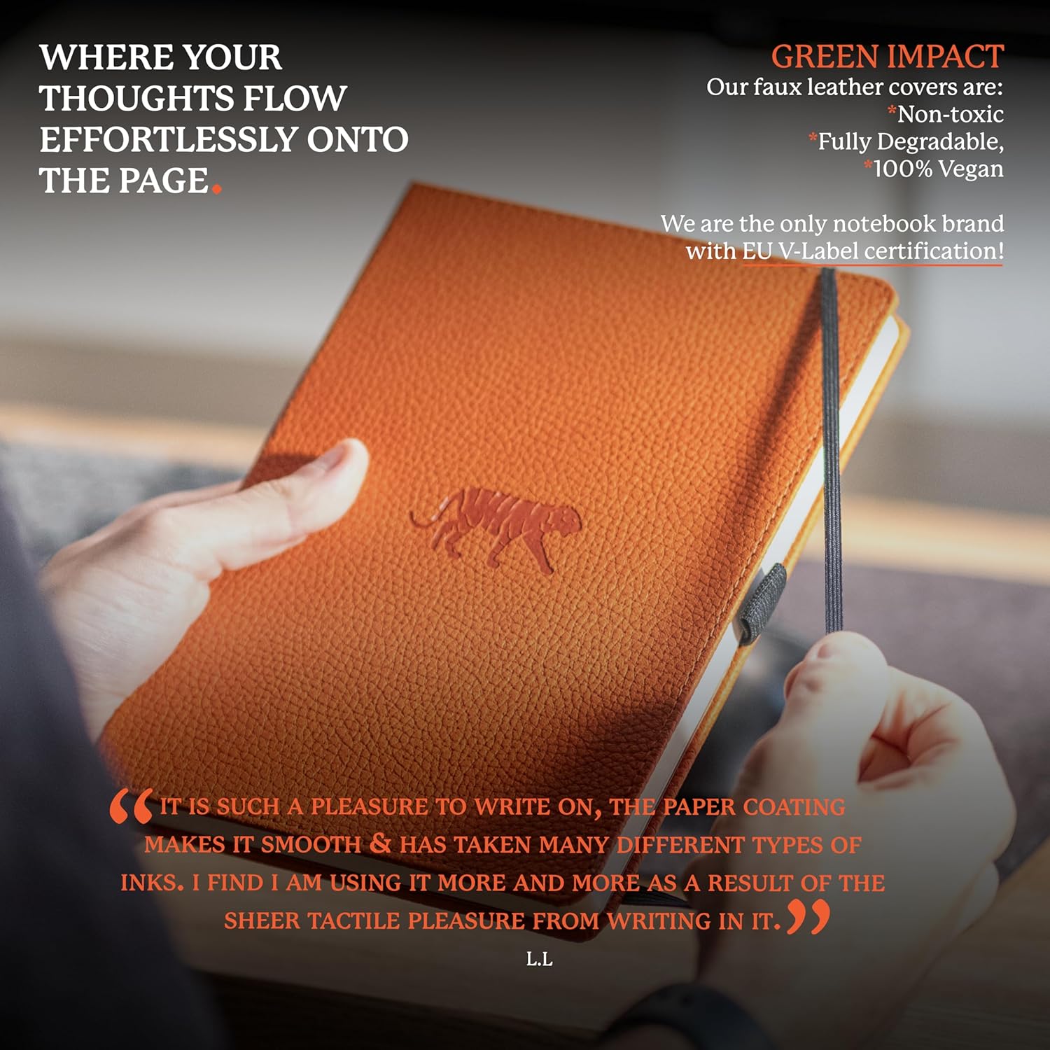 - A5 NOTEBOOK WITH LOTS O' FEATURES: Dingbats notebooks ooze quality - this hardcover bound leather notebook is crafted with PU vegan leather, micro-perforated cream 100gsm pages, an elastic closure and pen holder. It's complete with animal footprint end sheets, and an inner pocket for a little added detail - the perfect gifts for men and women, these travel essentials are a gift that keep on giving