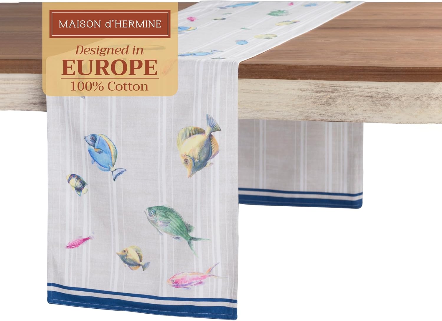 Maison d' Hermine Table Runner 100% Cotton Double Layer Table Runners 72 inches Long Decorative for Home Kitchen Dining Party Baby Shower Wedding Bridal Shower Spring Summer (Poisson, 14.50" x 72")