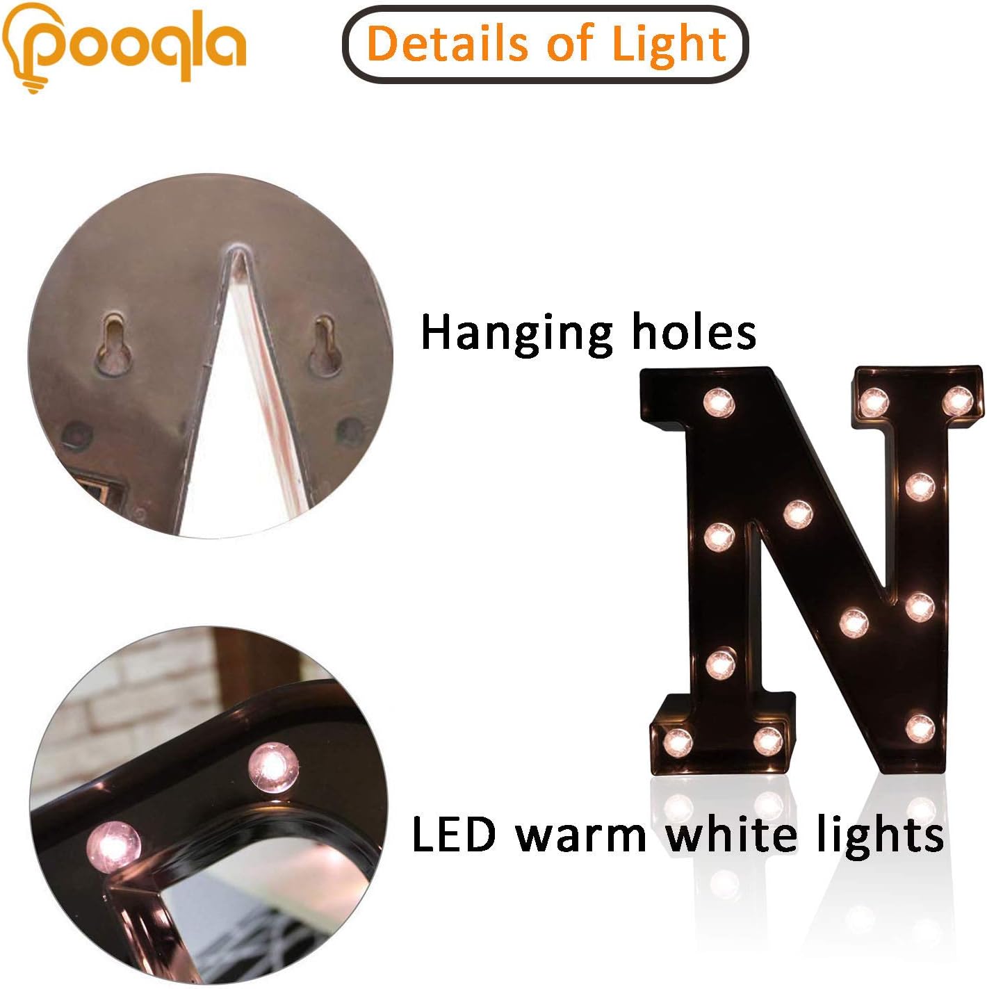 Decorative LED Illuminated Letter Marquee Sign - Alphabet Marquee Letters with Lights For Wedding Birthday Party Christmas Night Light Lamp Home Bar Decoration N, Black