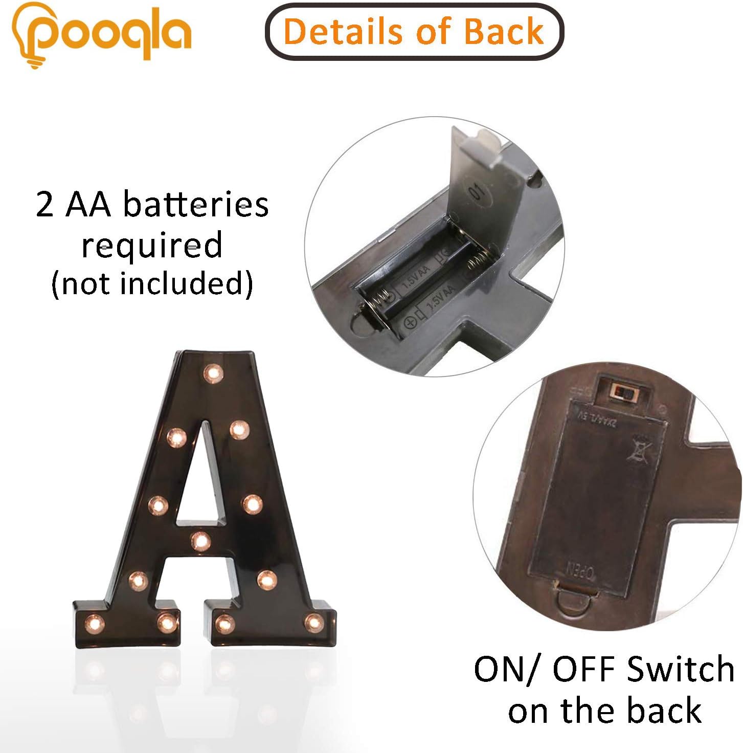 Pooqla Light Up LED Letter Marquee Sign - Alphabet Marquee Letters with Lights for Wedding Birthday Party Christmas Night Light Lamp Home Bar Decoration A, Black