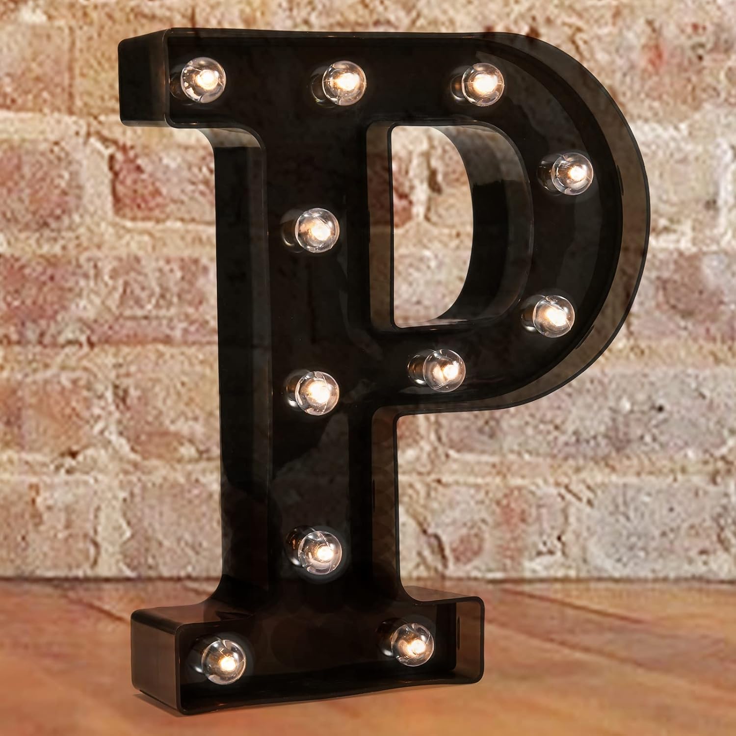 LED Illuminated Letter Marquee Signs - Alphabet Decorative Letter Lights For Wedding Birthday Party Christmas Night Light Lamp Home Bar Decoration (P - Black)