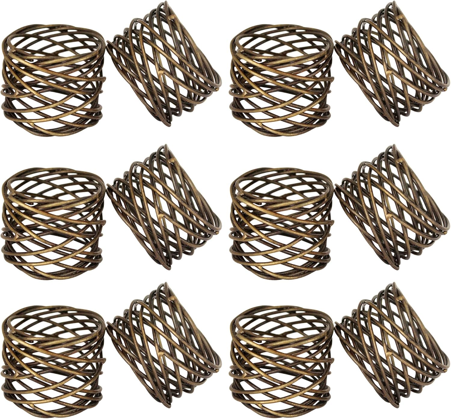 Handmade Round Mesh Napkin Rings Holder for Dinning Table Parties Everyday, Set of 12