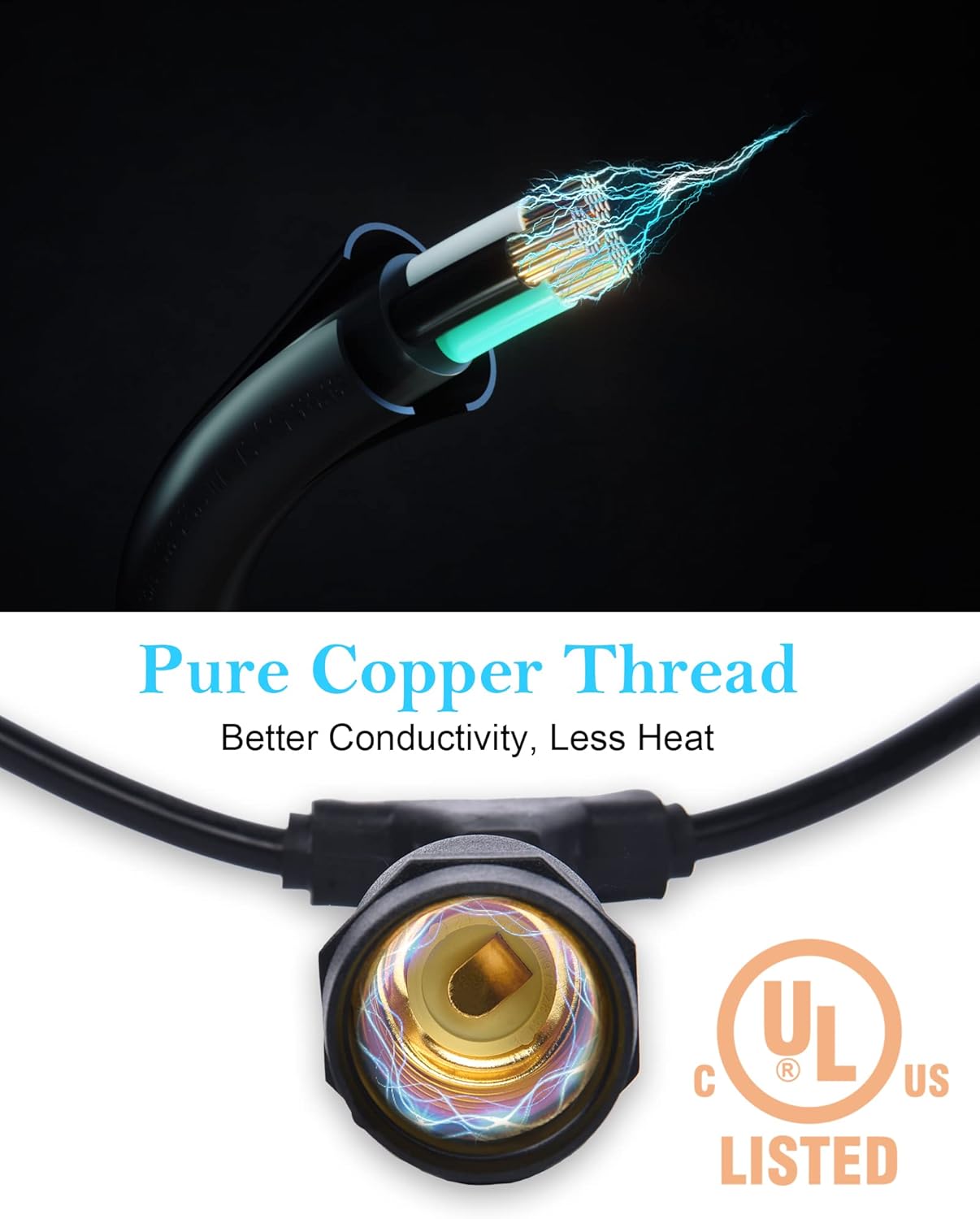- Safe & Durable: UL-listed Edison bulb string lights are crafted from pure copper cord for better conductivity and reduced heat during hours of use. IP55 wet rated outdoor vintage string lights is safe to hang outside year round through the elements like rain, snow, wind, heat weather, frost etc.