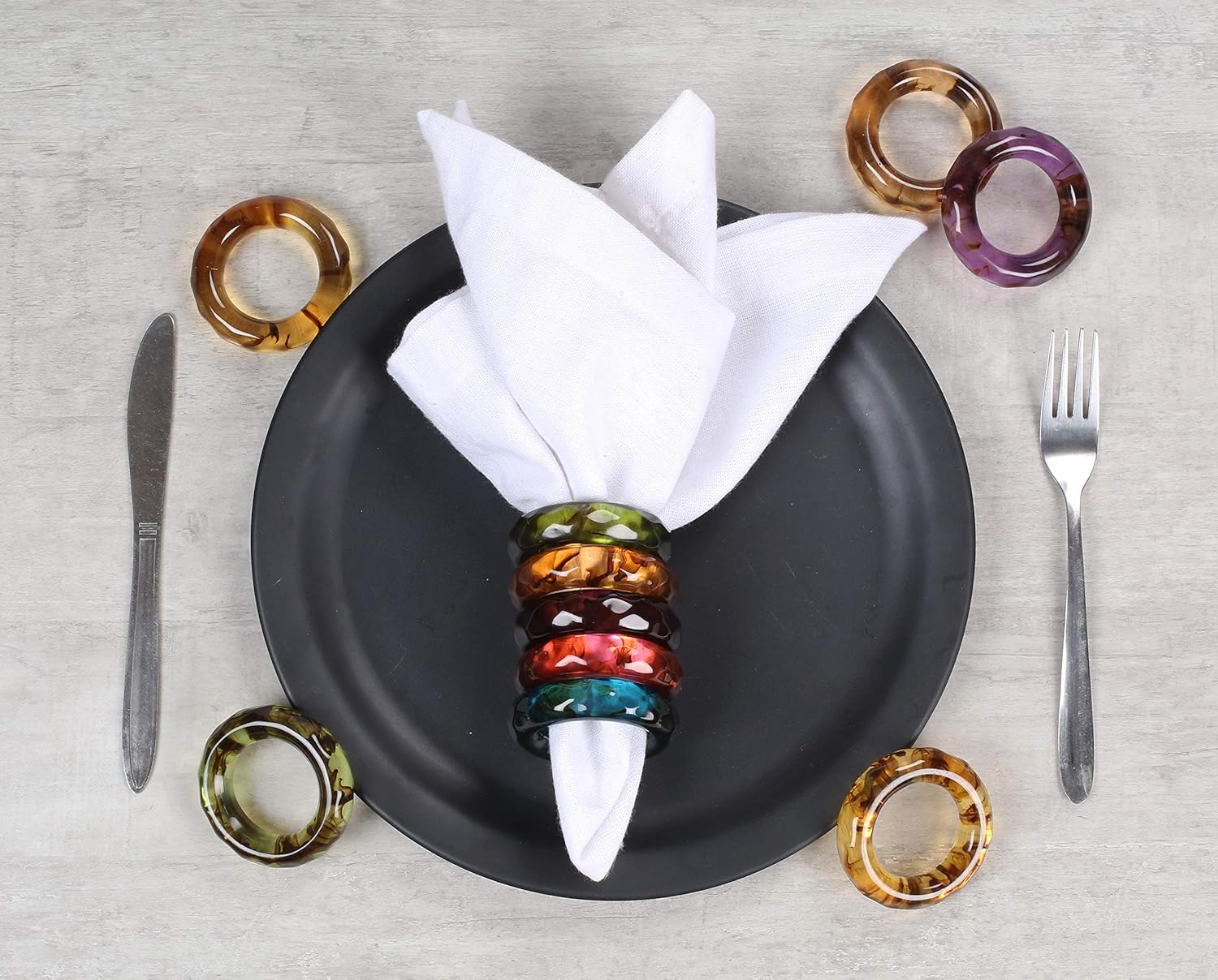 Spring Pastel Epoxy Napkin Rings - Set of 12 Multi-Color Epoxy Resin Napkin Holders for Modern Tabletop Decor, Perfect for Weddings, Parties, Special Events & Everyday Dining - ALPHA Living HOME