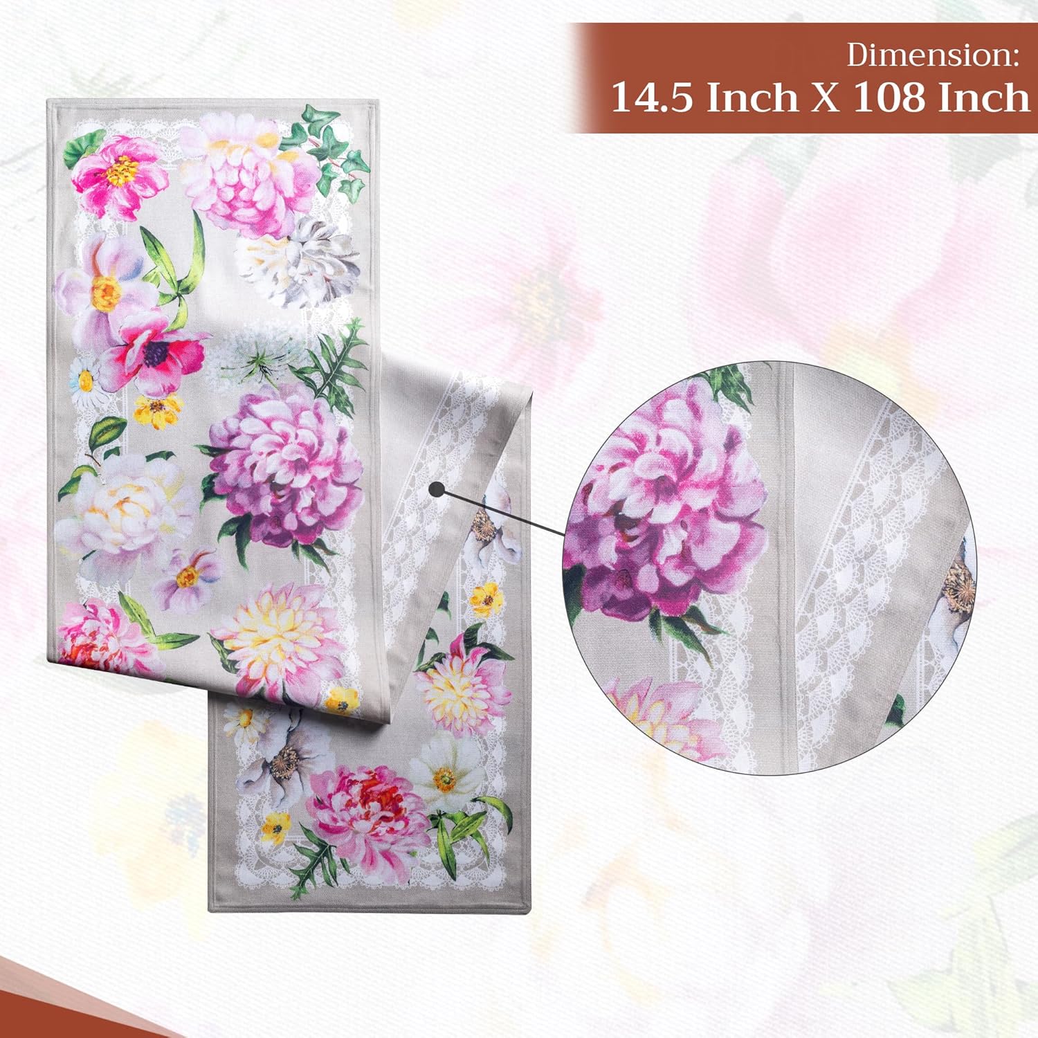Maison d' Hermine Table Runner 100% Cotton Double Layer Table Runners 108 inches Long Decorative for Home Kitchen Dining Party Baby Shower Wedding Bridal Shower Spring Summer (Pivoine, 14.50" x 108")