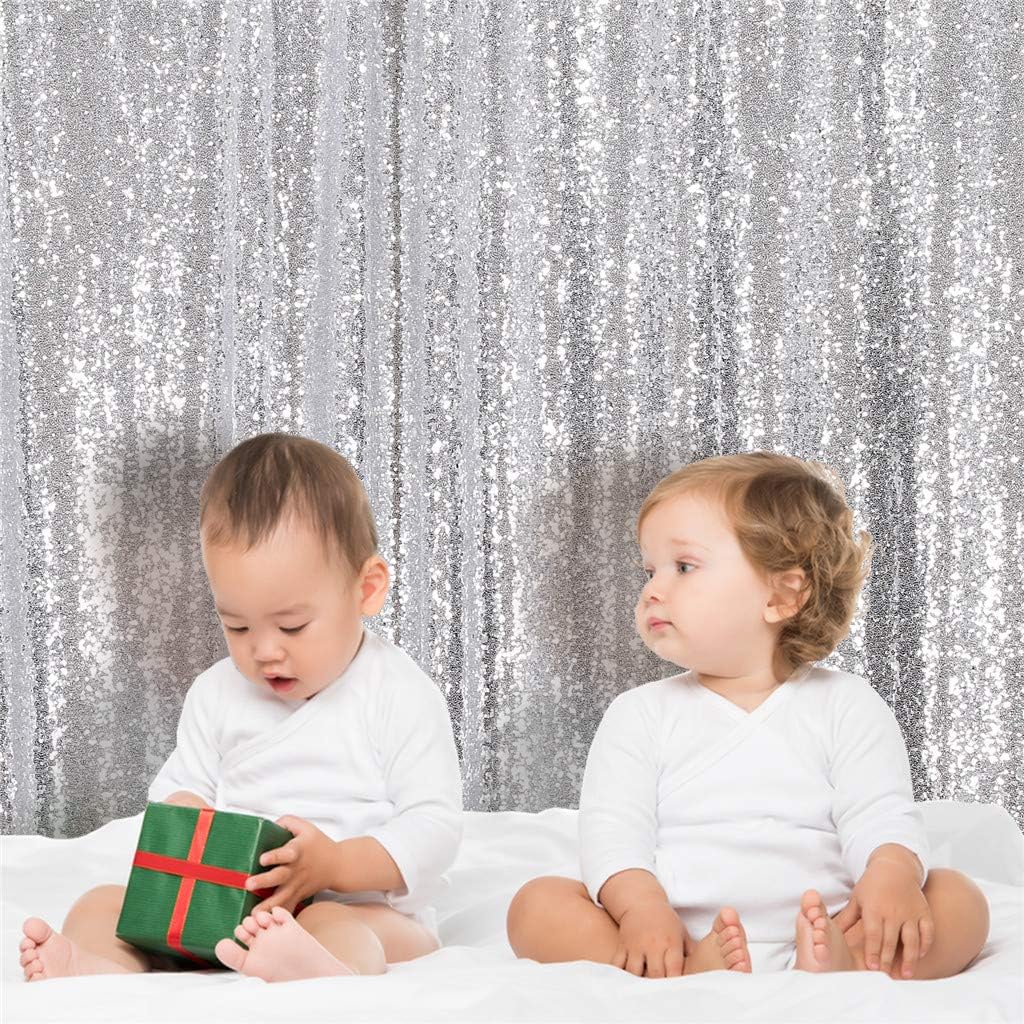 Eternal Beauty Silver Sequin Backdrop, 6x8 Ft Glitter Background Curtains for Shimmer Photography Party Wedding Birthday Back Drop Decor