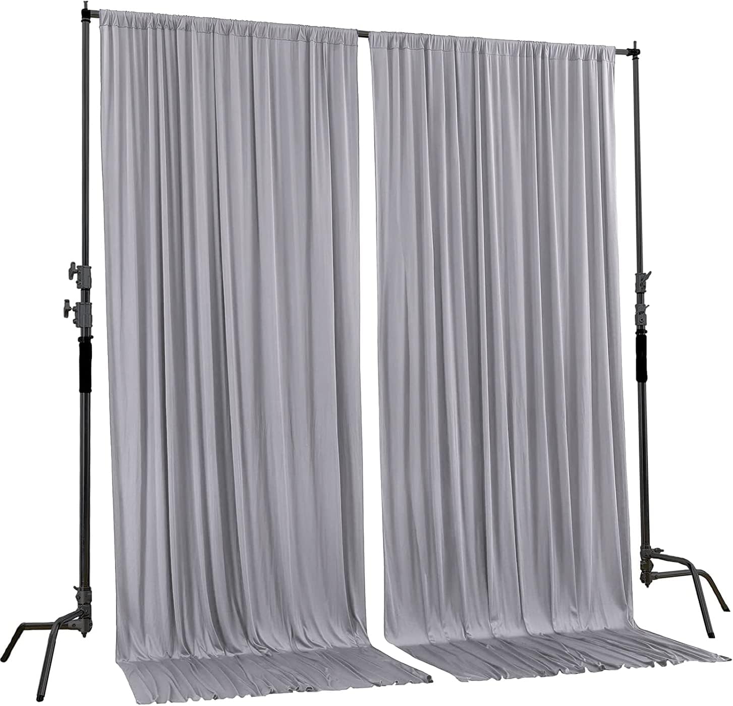 - DIMENSIONS: Each order is for 2 (two) polyester curtains. Each curtain measures 5 feet wide x 8 feet high. Entire backdrop measures 10 feet wide x 8 feet high.