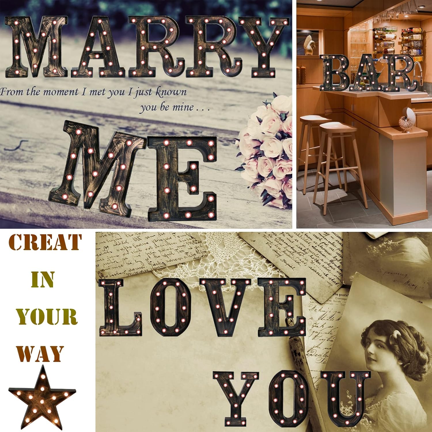 - Create In Your Way: Vintage-inspired letters perfect to compliment a rustic, farmhouse style.Use this light up letter to spell out a message such as “WELCOME” in your party, “MARRY ME” at a wedding and so on. The décor opportunities are endless