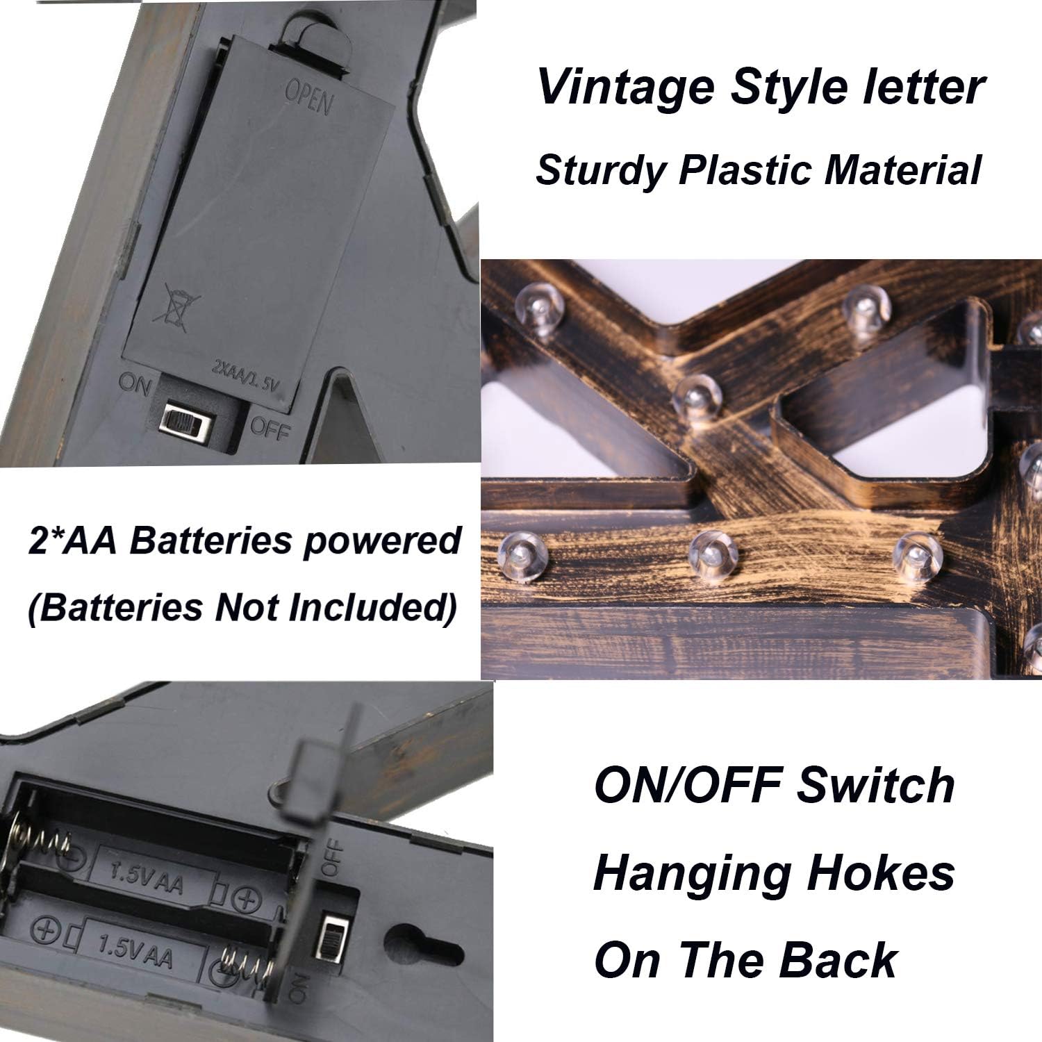 - Create In Your Way: Vintage-inspired letters perfect to compliment a rustic, farmhouse style.Use this light up letter to spell out a message such as “WELCOME” in your party, “MARRY ME” at a wedding and so on. The décor opportunities are endless