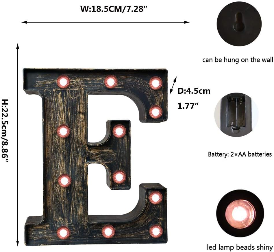 OYCBUZO Golden Black Led Marquee Letter - Industrial, Vintage Style Light Up Alphabet Letter Sign for Cafe Wedding Birthday Party Christmas Lamp Home Bar Initials Decor - E