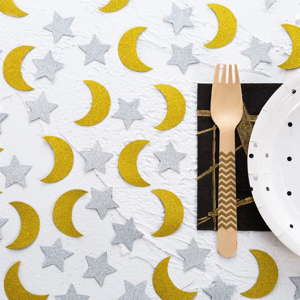 - Eid Day Star and Moon Confetti. 200pc confetti,gold glitter moon, silver glitter star confetti,each stars 1.2’’ in diameter,high quality craft paper confetti