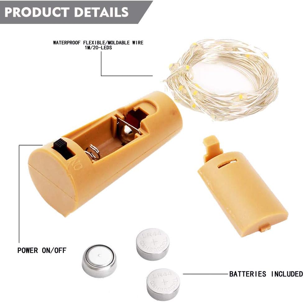 Bottle Lights 12 Pack 20 LEDs Cork Lights for Wine Bottles Battery (Included) Powered Fairy Mini String Lights for DIY Jar Lighting Indoor Bedroom Party Wedding Christmas Halloween Decor (Warm White)