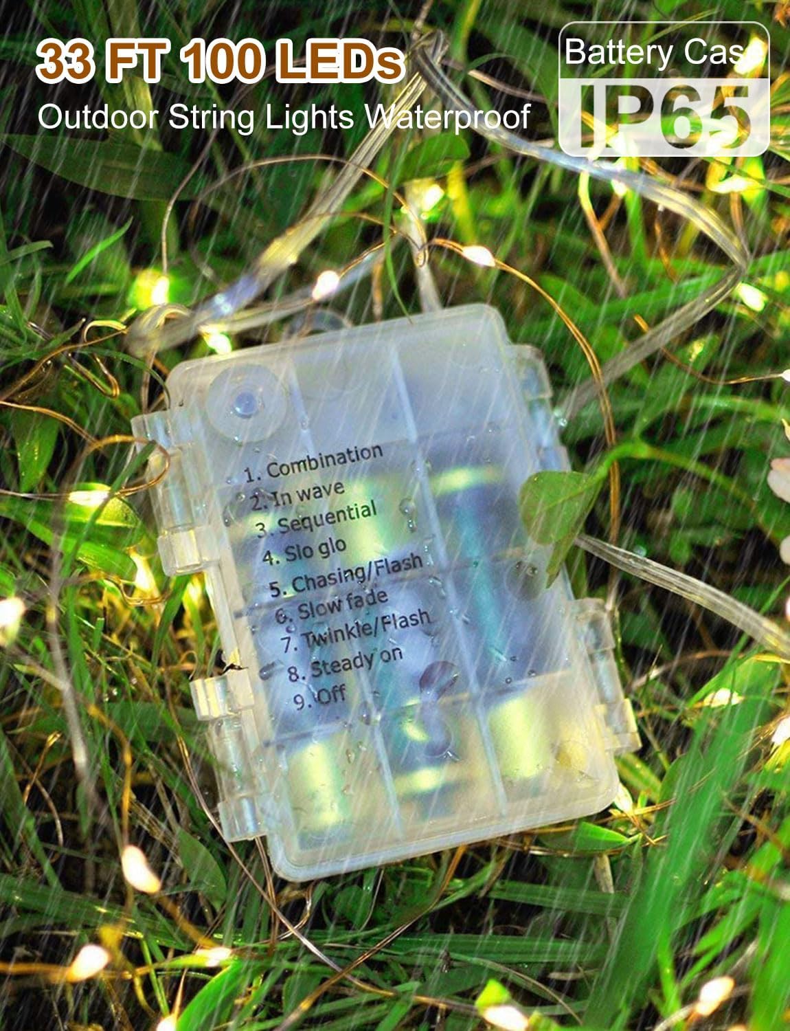 - 8 Lighting Modes and Timer/Dimmer - The string lights has 8 lighting modes, easy switching with fingertip clicks, and the light string adds automatic timing function (6 hours on, 18 hours off), built-in memory chip, easy to use. The dimmer can be set to different modes and brightness for special occasions.