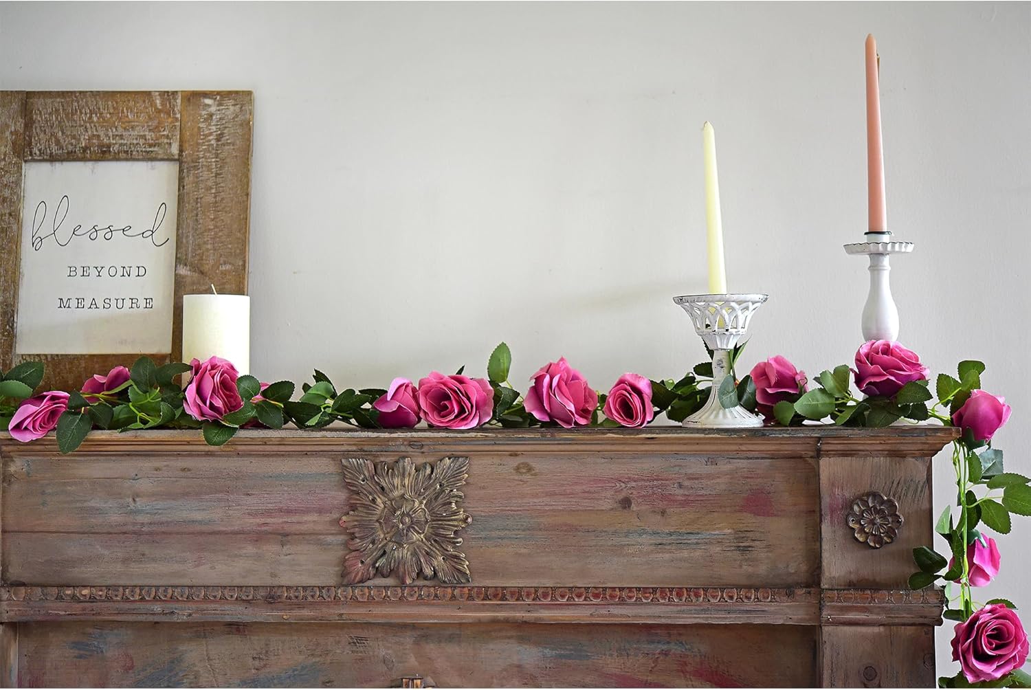 FiveSeasonStuff 29 Ft 4 Pack Rose Silk Flower Garland Artificial Flowers Decoration Hanging Floral Décor for Wedding Baby Shower Birthday Party Garden (Fuchsia)