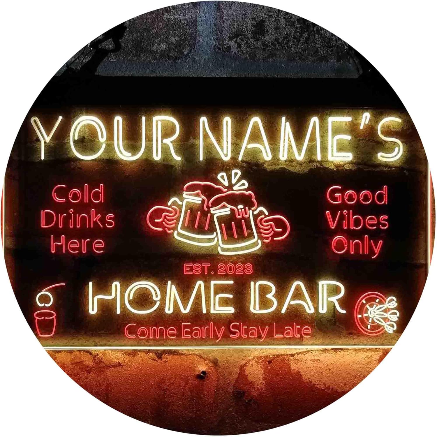 ADVPRO Personalized Your Name Custom Home Bar Beer Established Year Dual Color LED Neon Sign Red & Yellow 24 x 16 Inches st6s64-p1-tm-ry