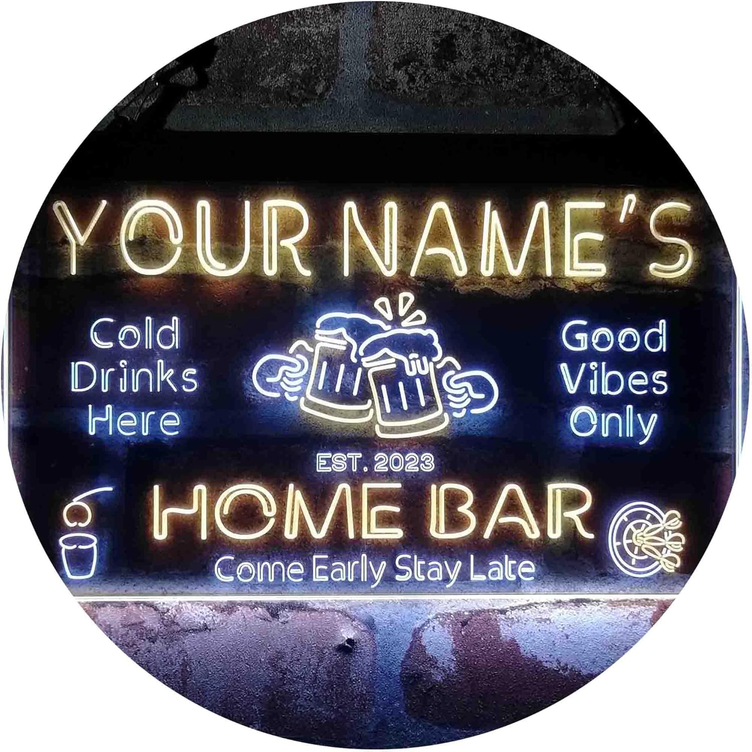 ADVPRO Personalized Your Name Custom Home Bar Beer Established Year Dual Color LED Neon Sign White & Yellow 24 x 16 Inches st6s64-p1-tm-wy