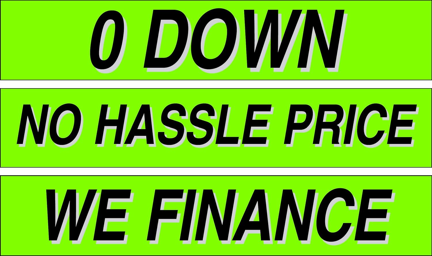 - 0 Down, No Hassle Price, We Finance 💥 1 Dozen Each, Car Lot Pro Pack 15" Slogans