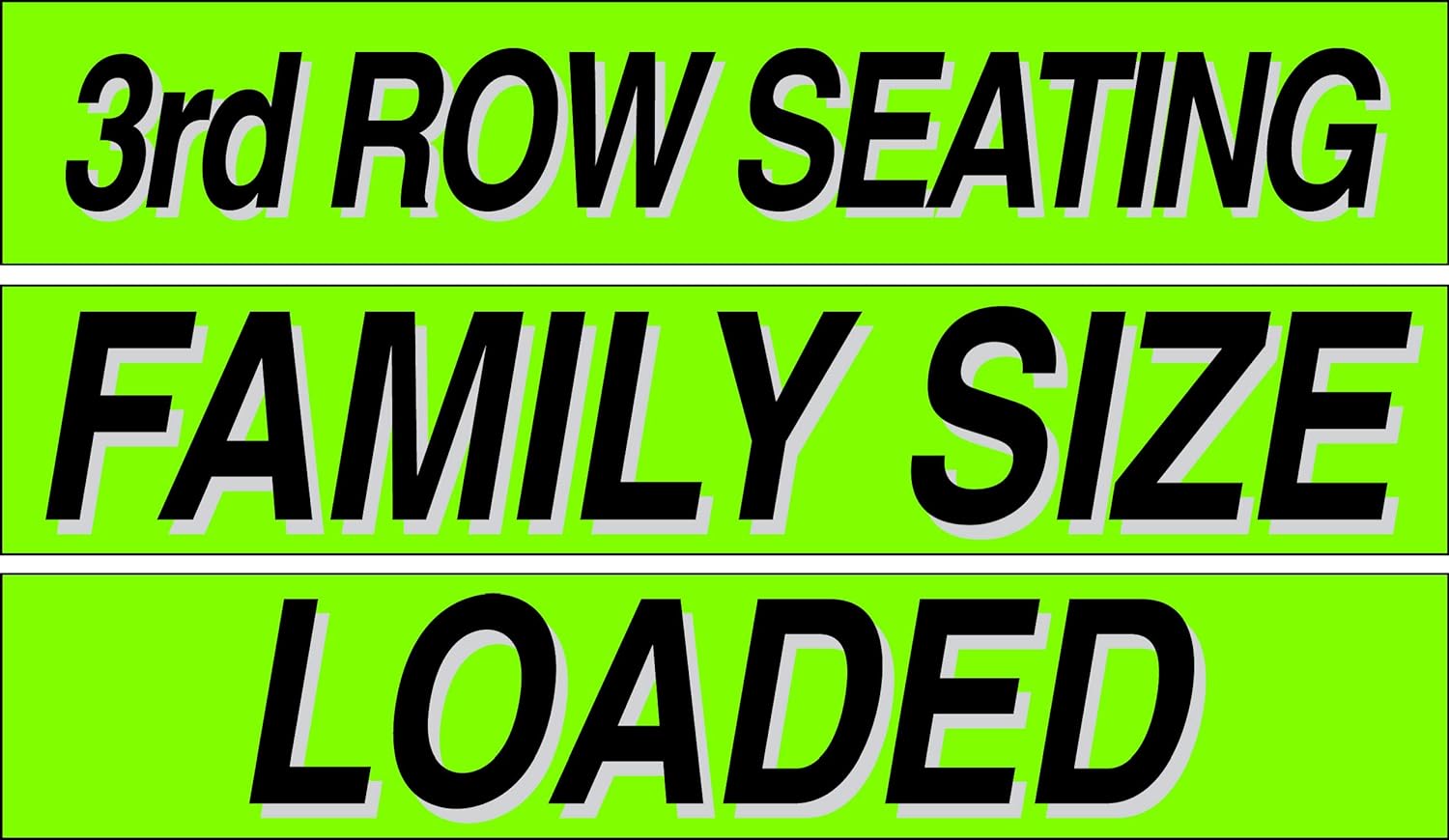 - 3rd Row Seating, Family Size, Loaded Stickers๐ฅ 1 Dozen Each, Car Lot Pro Pack 15" Slogans