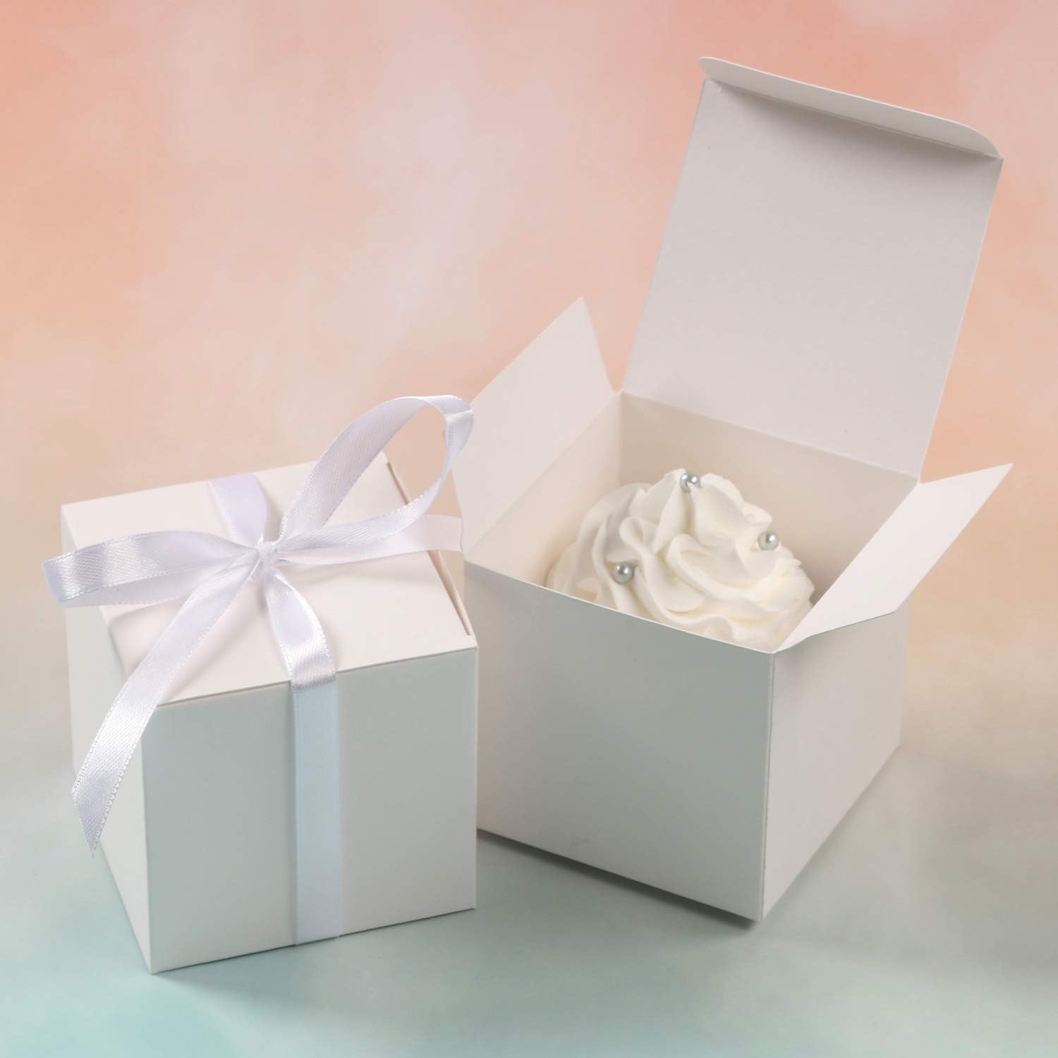 COTOPHER 60pcs Wedding Favor Boxes, Paper Gift Boxes 3x3x3 Inches Small Gift Boxes with Ribbons Small Boxes for Gifts, Crafting, Cupcake, Candy, Bridesmaid Proposal Boxes,Easy Assemble Boxes (White)