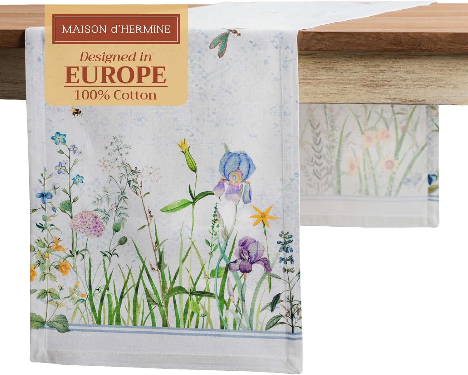 Maison d' Hermine Table Runner 100% Cotton Single Layer Table Runners 72 inches Long Decorative for Home Kitchen Dining Party Wedding Bridal Shower Spring Summer (Fleurs De Mai, 14.50" x 72")