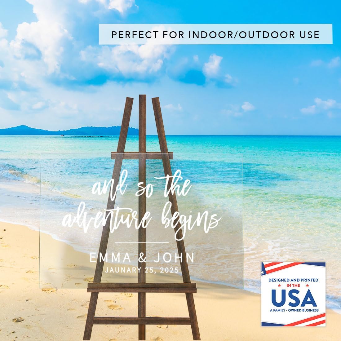 Andaz Press Custom Large Wedding Acrylic Sign, 16 x 24 Inches, The Adventure Begins, Personalized Sign, Welcome Sign For Modern Wedding Decor Welcome To Our Beginning