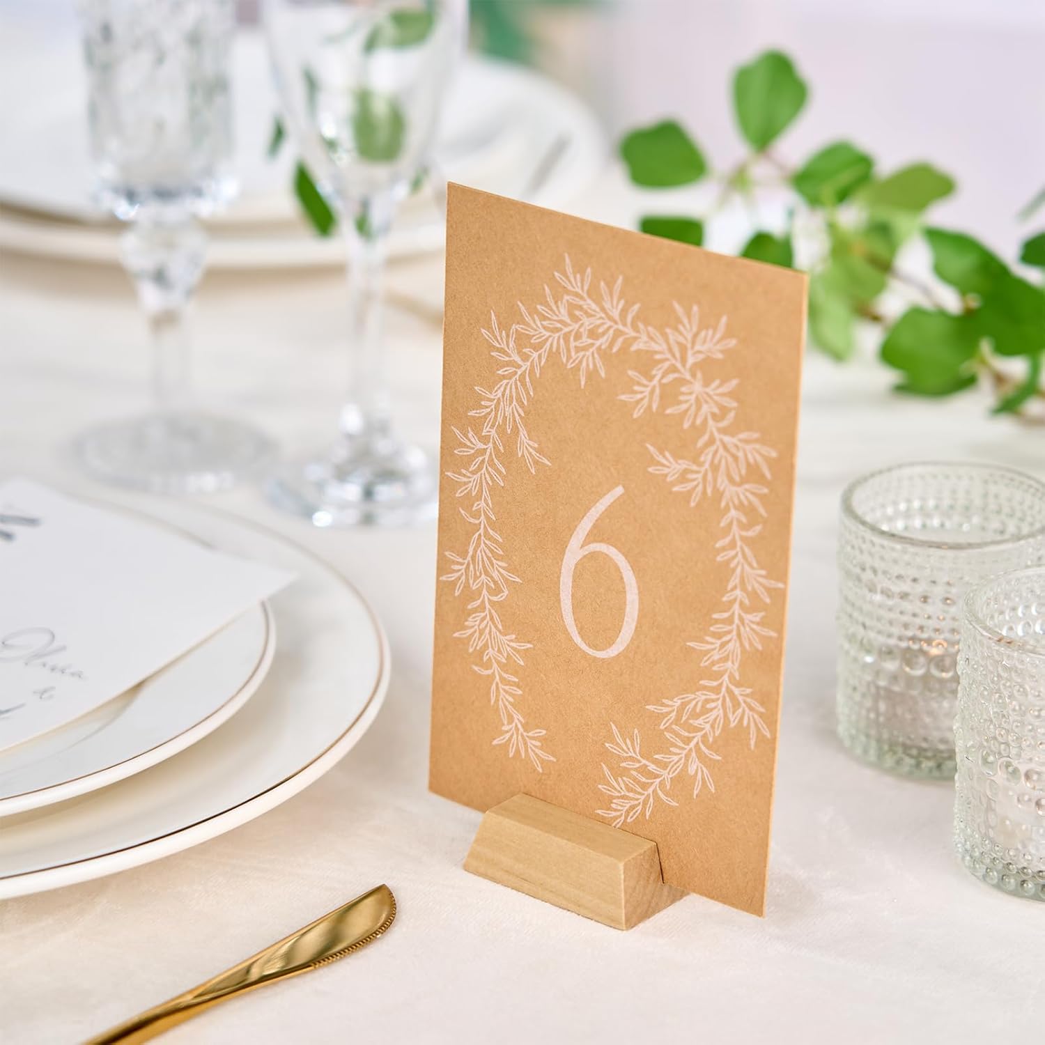 - Unique Design – With natural wood color and trapezoid design, these wood stands are delicate and beautifully made - they will perfectly match your table signs and add a smooth, natural and minimalist touch.