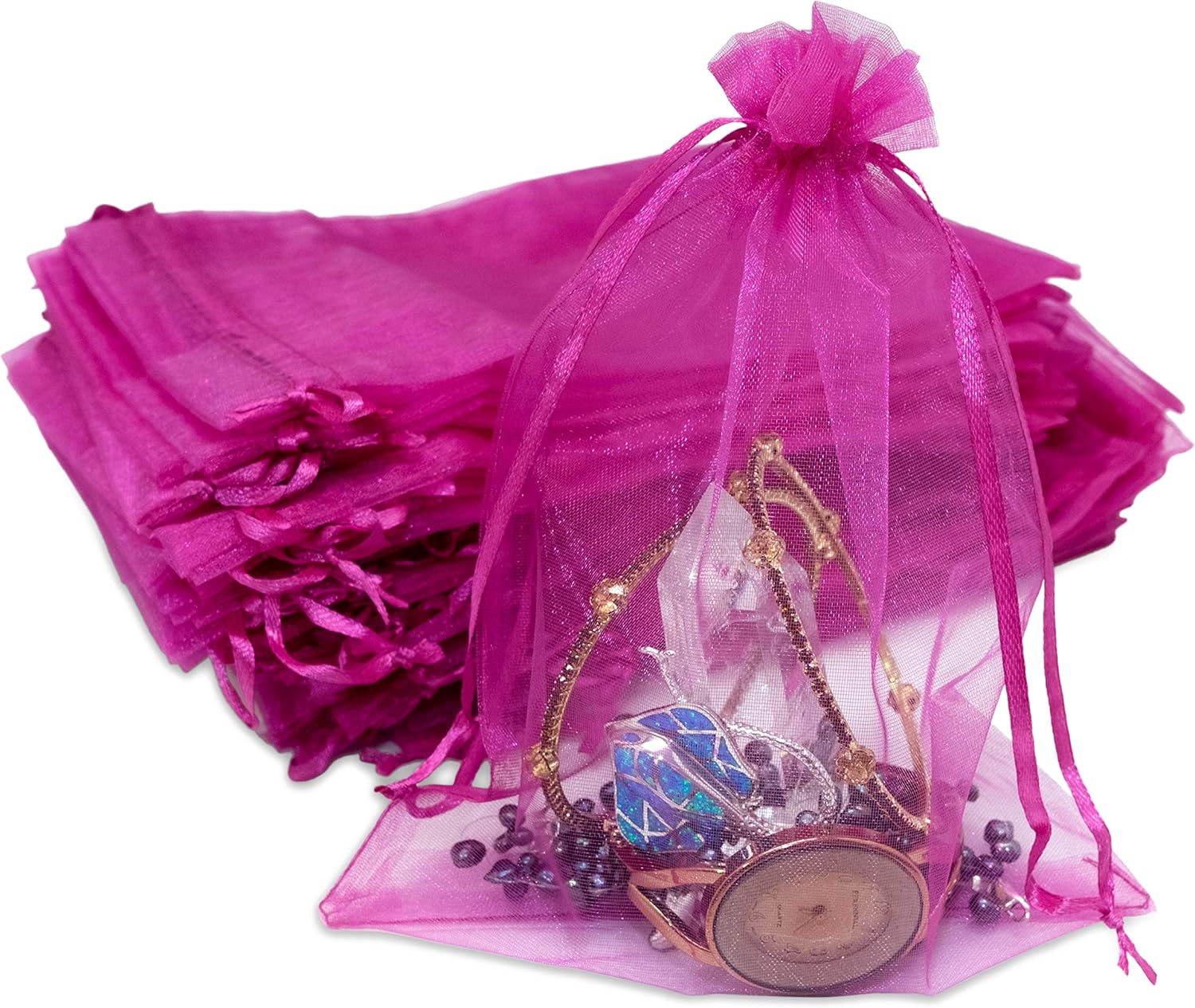 TheDisplayGuys 48-Pack 6x8 Hot Pink Sheer Organza Gift Bags with Drawstring, Jewelry Candy Treat Wedding Party Favors Mesh Pouch