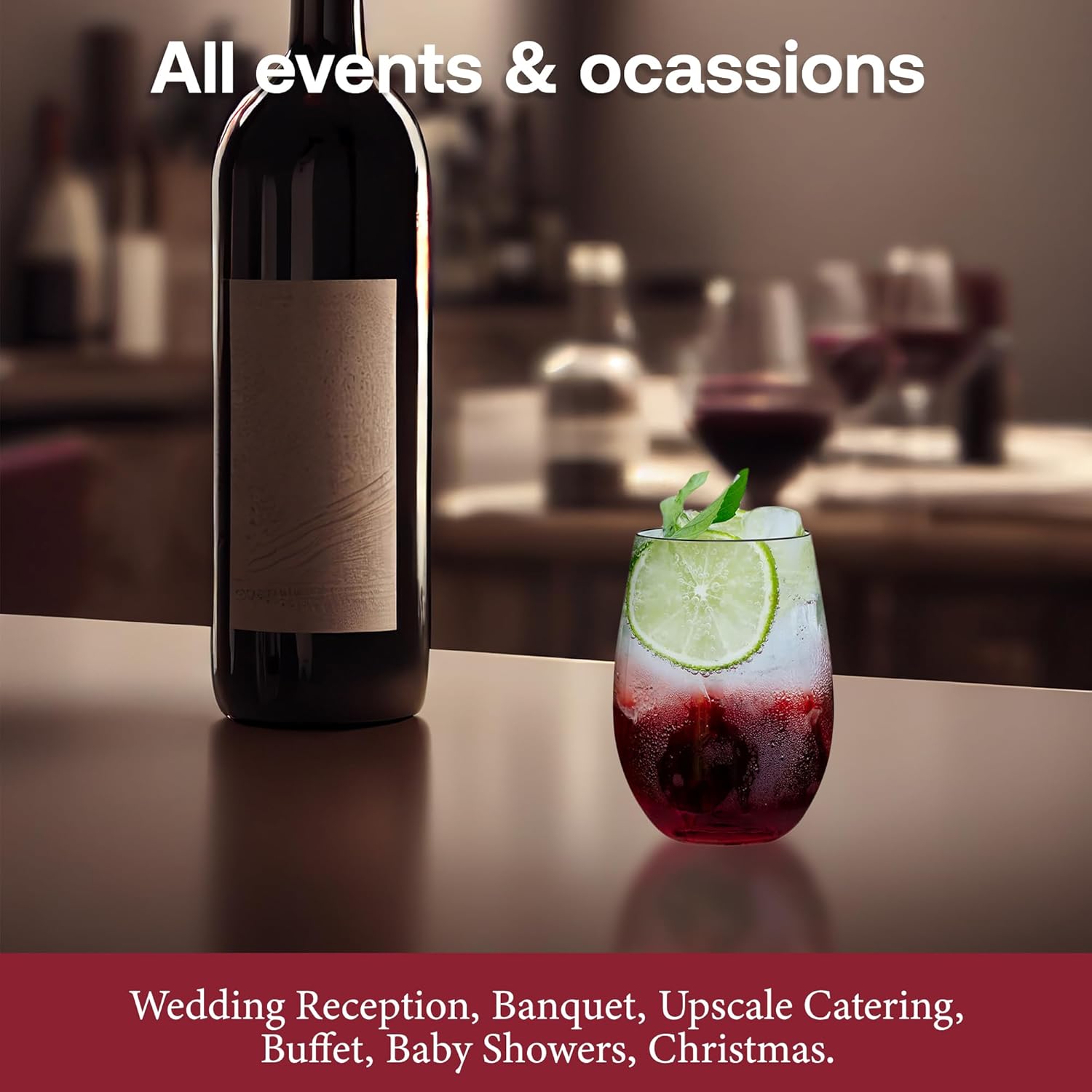 - SLEEK, SPACE-SAVING DESIGN โ These wine glasses plastic are stackable and easy to store, with a clear, stemless design that adds a chic, modern touch to any occasion, from formal to casual events.