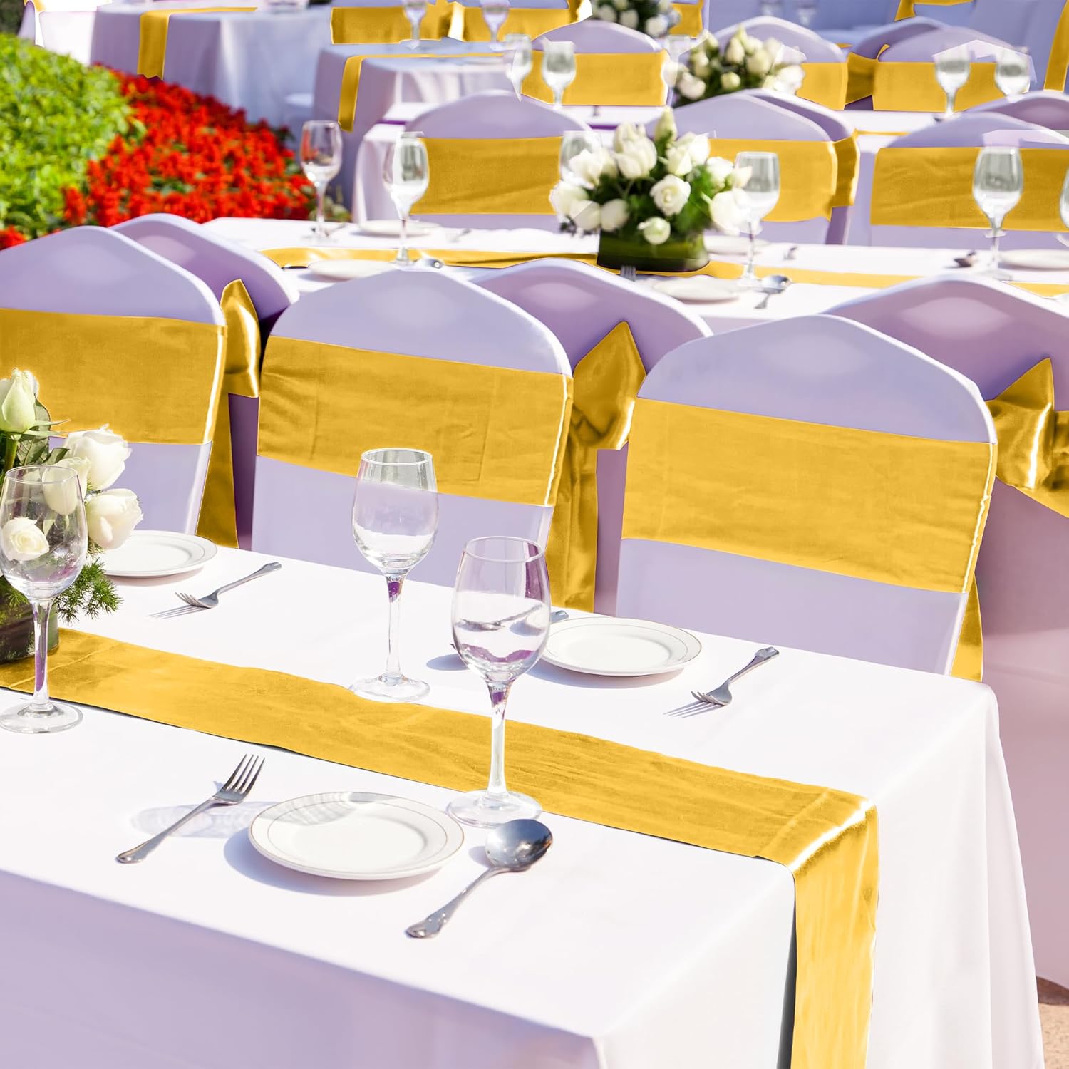 - Quantity and color: one set comes with 12 satin table runners, enough quantity is suitable for wedding banquets and various parties; the table runners are gold, which will make your table decorations elegant and guests will love them