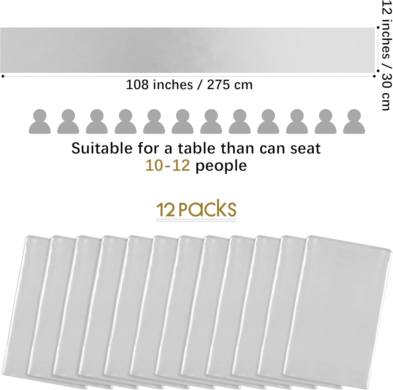 - Quantity and color: one set comes with 12 satin table runners, enough quantity is suitable for wedding banquets and various parties; the table runners are light silver, which will make your table decorations elegant and guests will love them
