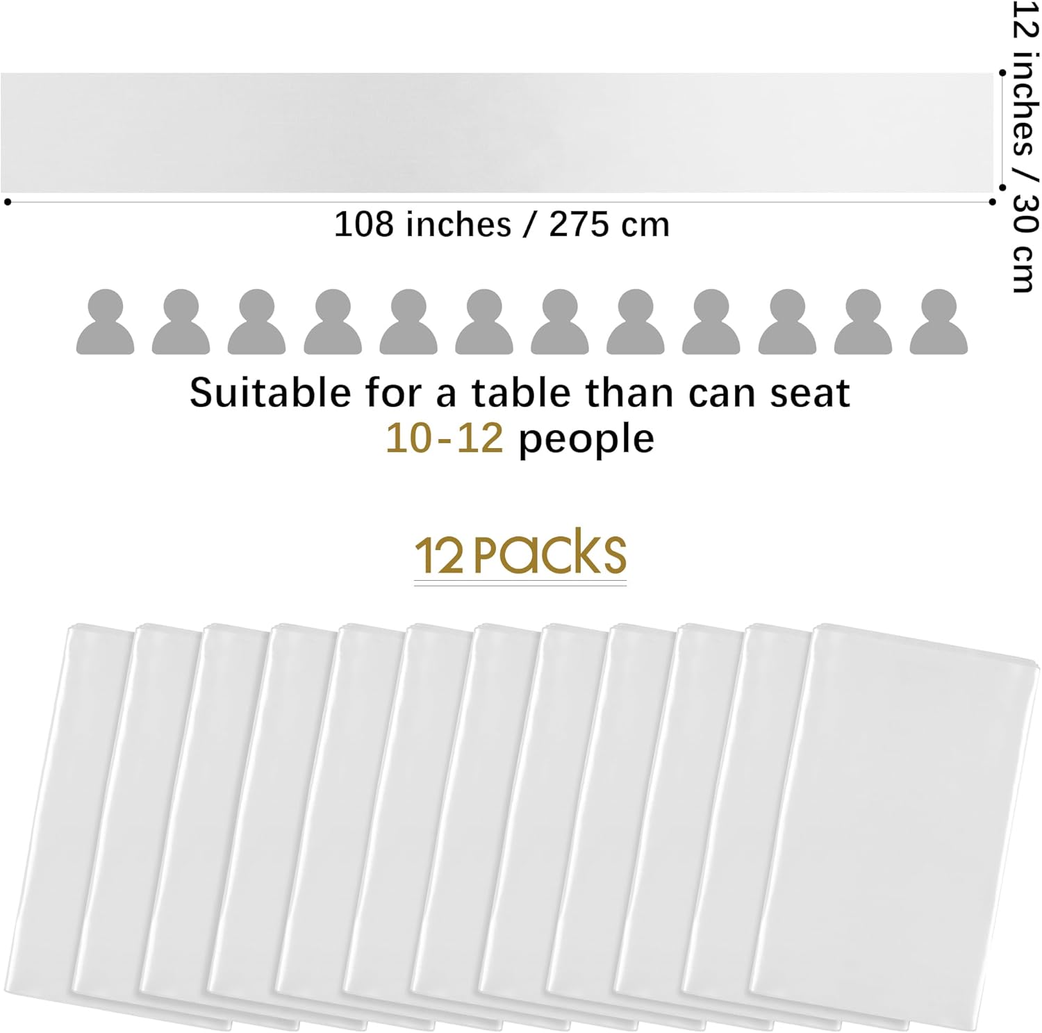 - Size and for diy: the size of each table runner is approximately 12 x 108 inches / 30 x 275 cm, which is large enough to cover rectangles and round tables, can also be spliced together for long tables; you can tie a bow to make the white runner look more special, it can also be used as an ornament for chair covers
