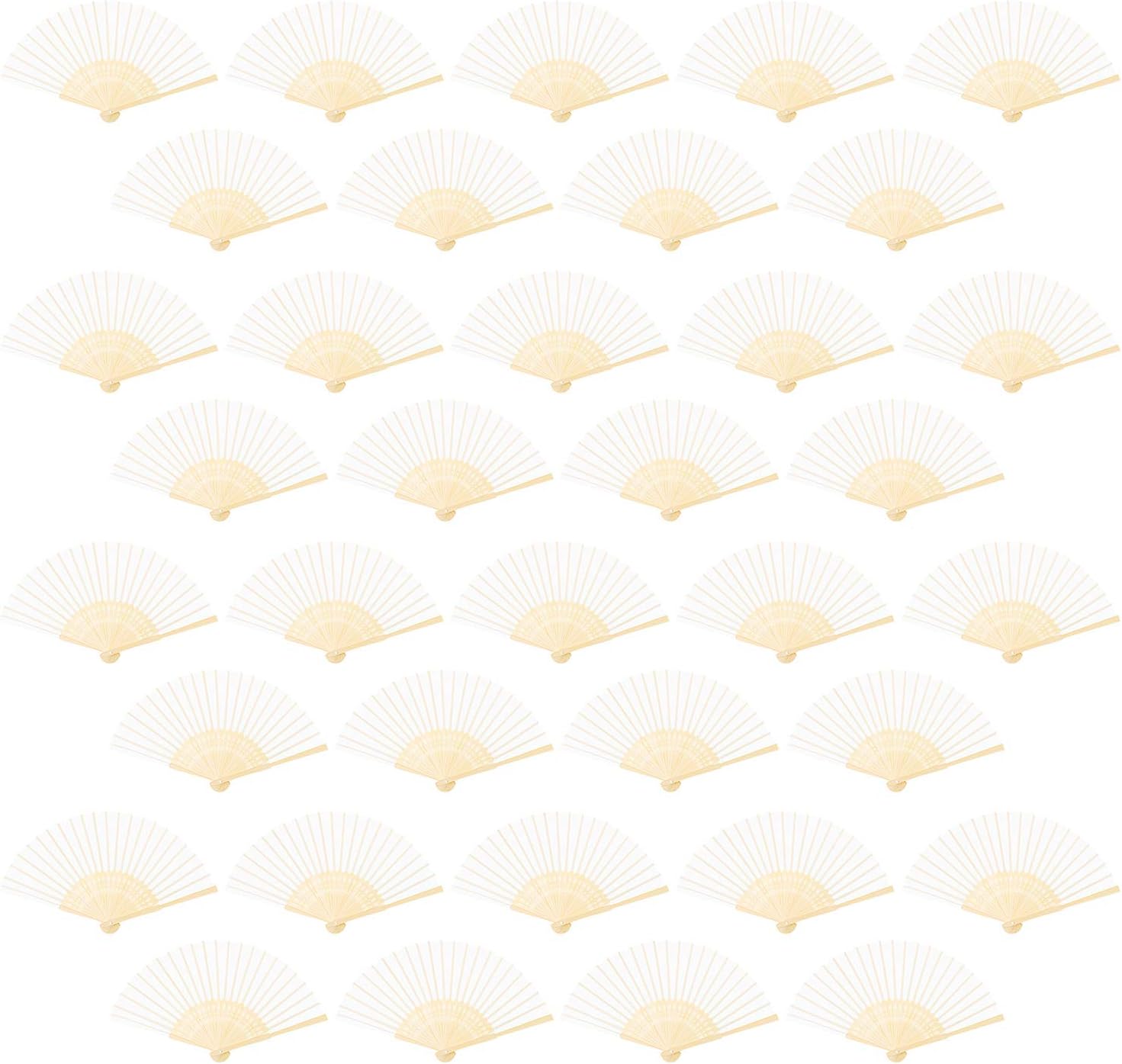 URATOT 36 Pieces White Folding Fans Silk Bamboo Folding Fans Handheld Fans for Wedding, Party Decoration