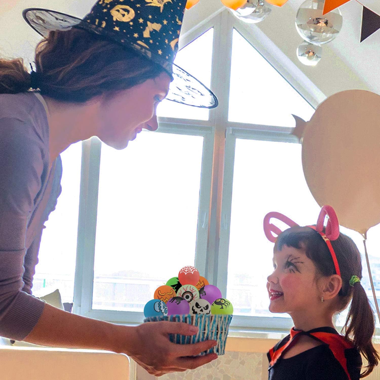 - Cute designs:8 Halloween Theme Character Designs in 8 bright colors:Orange-Pumpkin Face, Purple-Kitty Cat, White- Haunted Ghost, Green-Fairy-tale Witch, Blue-Funny Skull, Red-Spider web, Yellow-Tricky Spider and Grass green-Spooky Eyeballs. Our interesting design will attract children's attention at first sight, they will definitely love it.