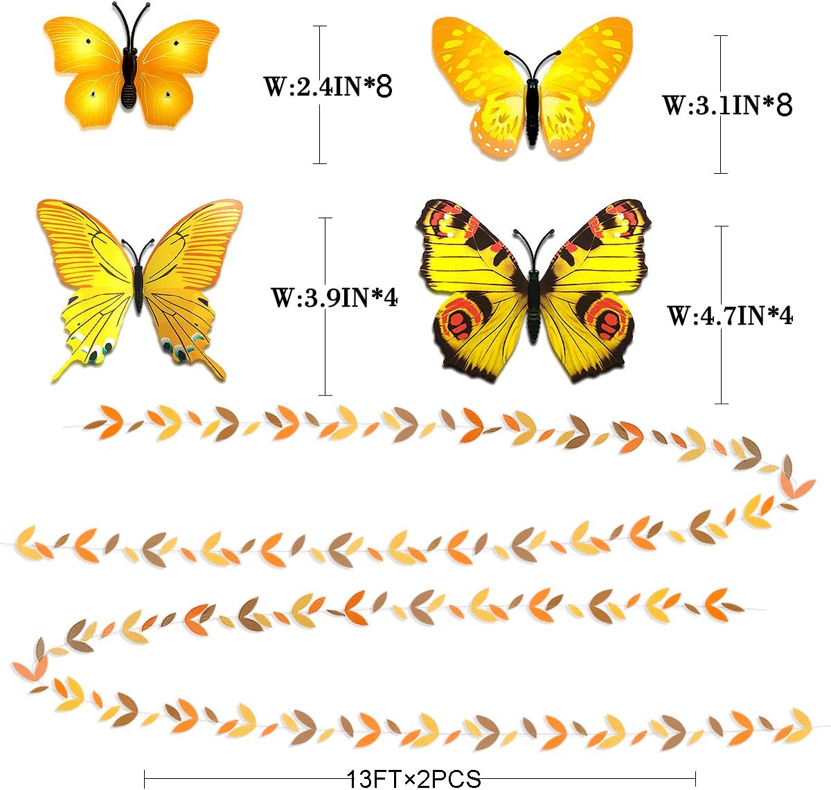 - 💛UNIQUE DESIGN- Decorative paper lantern with yellow orange 3D butterfly decals stickers and fall color leaf garlands,This design making your fall theme party decoration more vibrant and gorgeous,Imagine the look as they walk into your theme party to see the beautiful fall decorations that you so deliberately decided upon.
