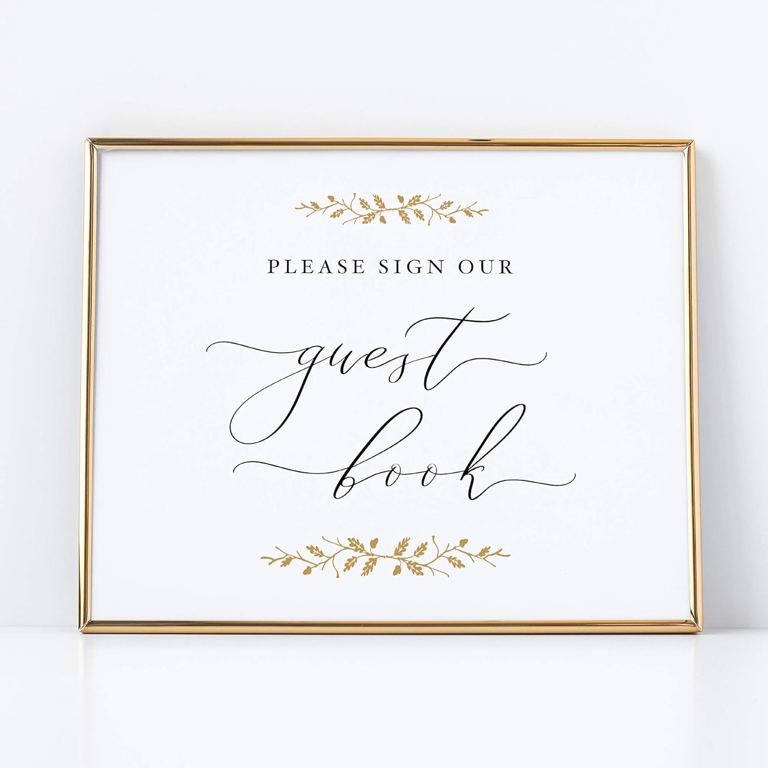 Please Sign Our Guestbook Sign for Weddings 8x10 Pearl with Gold Accents Printed on Professional Thick Pearlescent Cardstock Wedding Decoration UNFRAMED Elegant Style