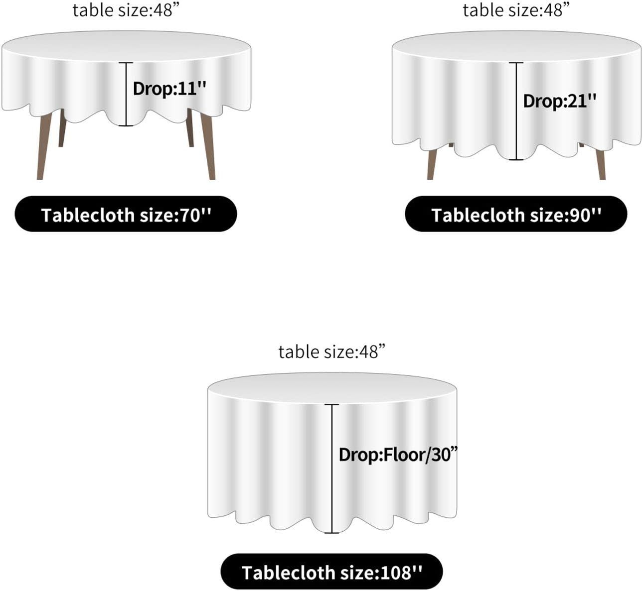 • 2 PACK SET, MORE ECONOMICAL: Each pack include 2 pcs of tablecloth, measuring 70” diameter each. Durable for repeat use, cheaper than renting.We also have 6 pack set and 12 pack set,which will save more.