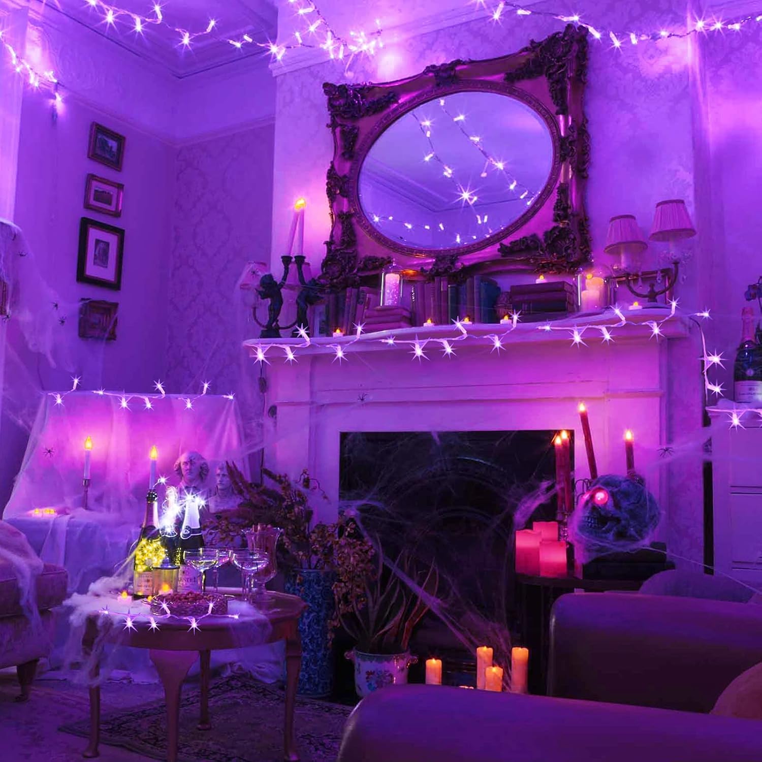 - [Safety & Convenience] Our indoor Halloween string lights have passed the authoritative UL588 safe certification, using 30V low-voltage plug, which is lower than the human body 36V safe voltage, very safe to use. In addition, just plug in the socket to light the string lights, and pull it out when not in use. As we know, plug in transformer operated string light are brighter and more stable than others