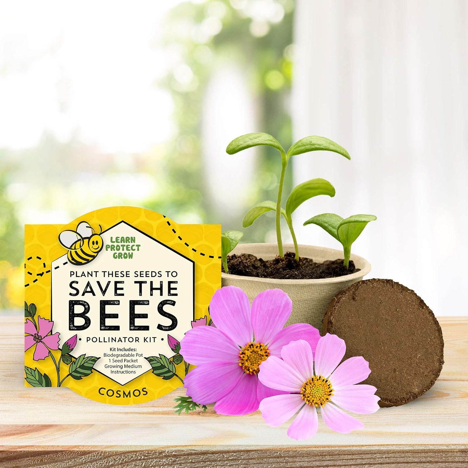 Buzzy Seeds Save The Bees Biodegradable Grow Kit | Herb, Plant, Flower Starter Kit for Kids & Adults | Assorted Wildflowers 12-Pack | Guaranteed to Grow | Best Indoor Grow Your Own Plant