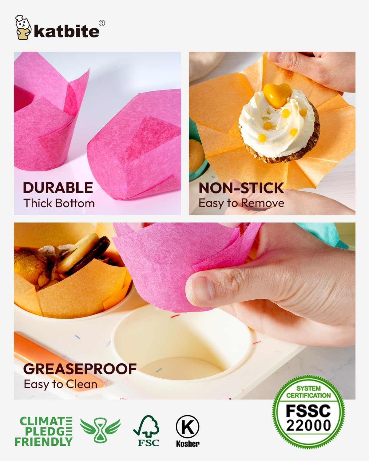 Katbite Tulip Cupcake Liners 200PCS, Muffin Liners Baking Cups, Cupcake Wrapper for Party, Wedding, Birthday