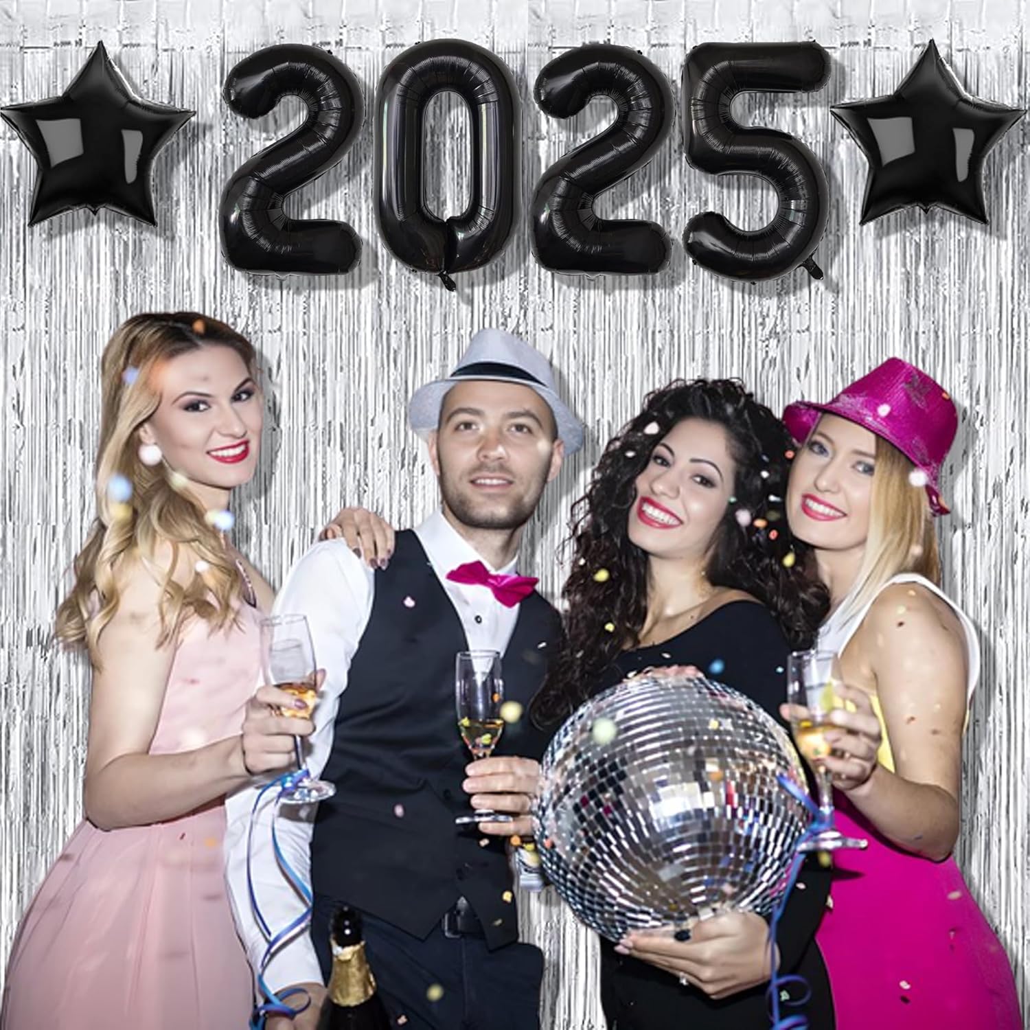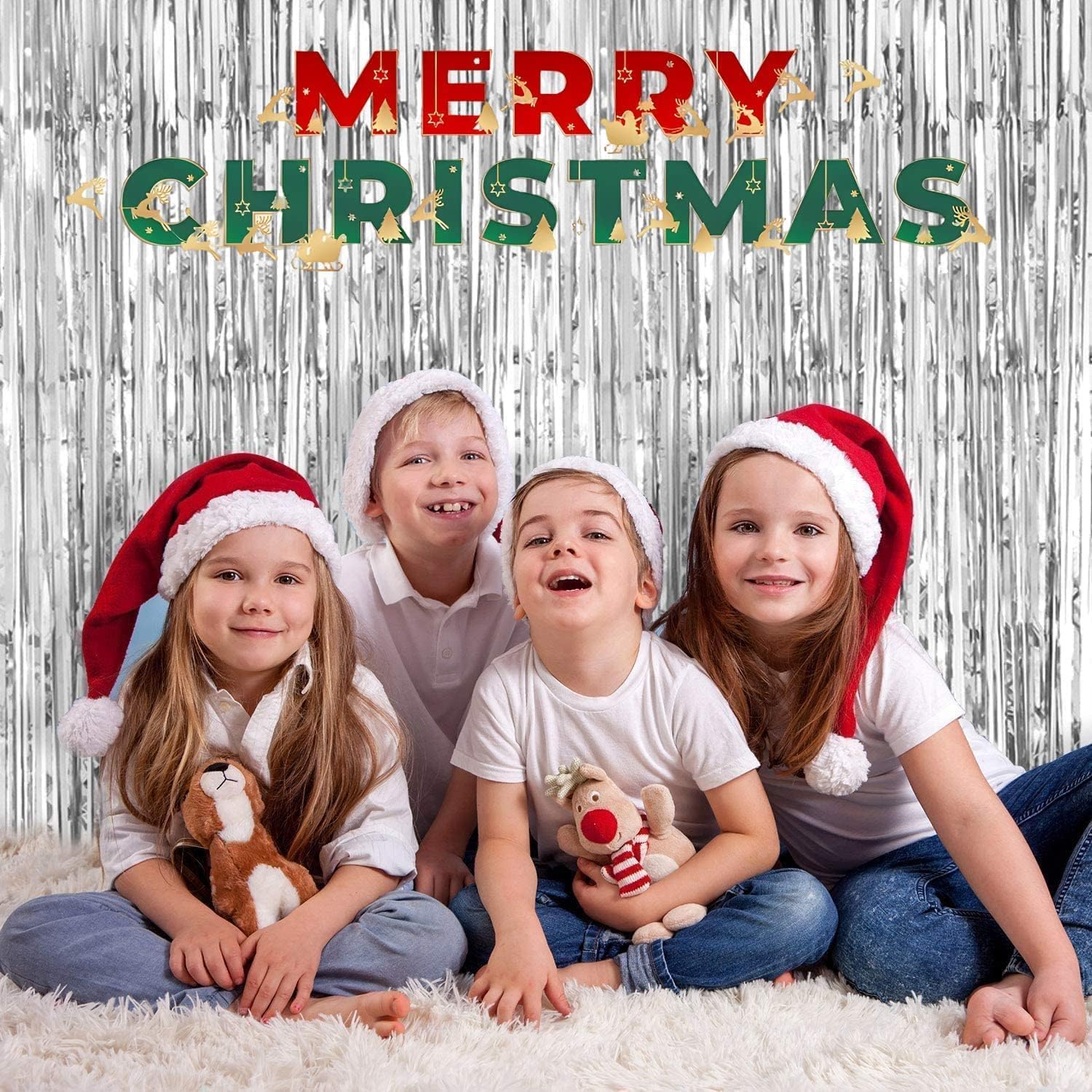 Foil Fringe Curtain Christmas Party Decorations - Silver Metallic Tinsel Photo Booth Backdrop Party Steamers Curtains for 25th Birthdays Decorations Anniversary New Years Eve Bachelorette Parties