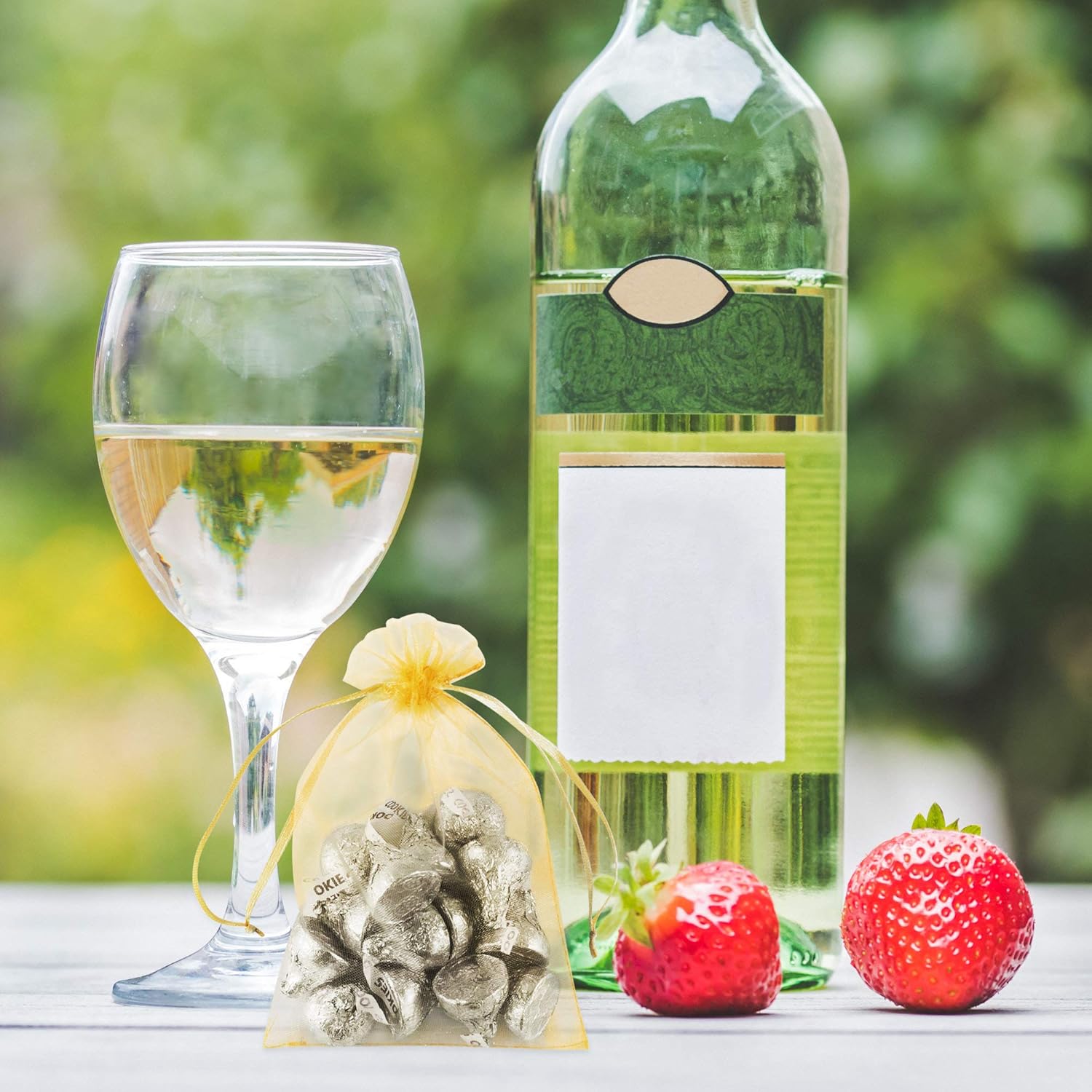 Super Z Outlet 100 Pack 5x7 Inch Mini Sheer Drawstring Organza Transparent Bags Jewelry Sack Pouches for Wedding, Party Decorations, Arts & Crafts Gifts (Gold)