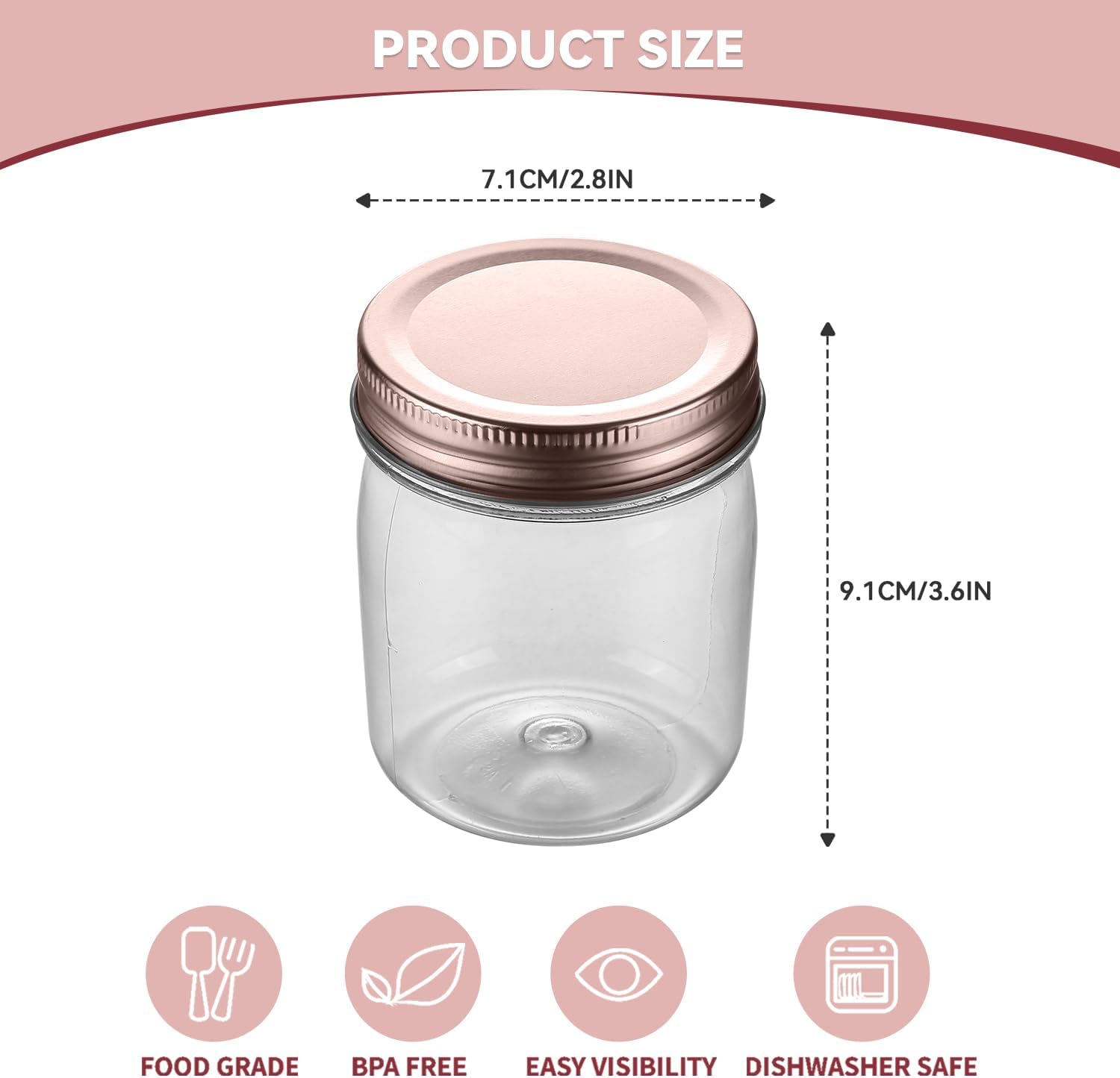 novelinks 8 oz Clear Plastic Jars with Screw-On Lids - BPA-Free Refillable Storage Containers for Slime, Spices, Crafts, Kitchen & Home Organization (32 Pack,Rose Gold)