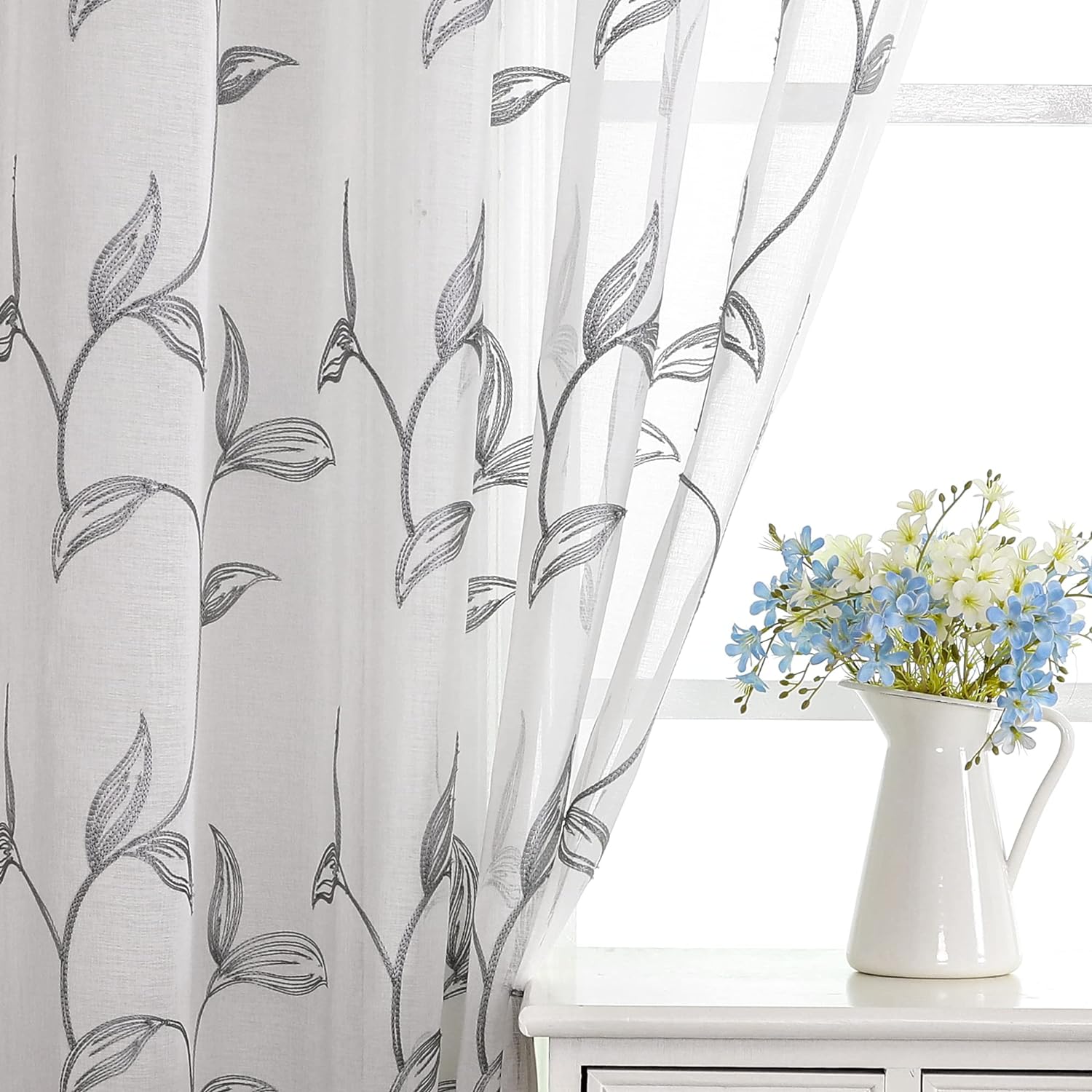 - Elegant embroidered design: window sheer curtains design grey vine leaves embroidered pattern, add style and elegance to living space, perfect for Bedroom, living room, kids room or any window.